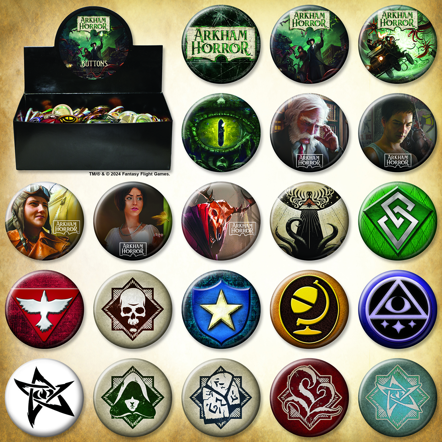 Arkham Horror Investigator Of Book Cover Button