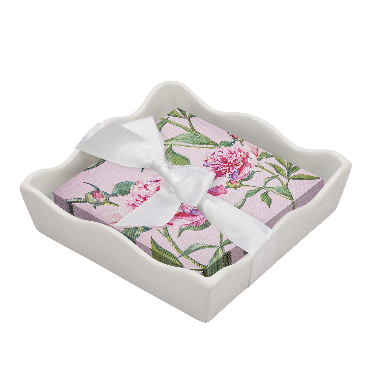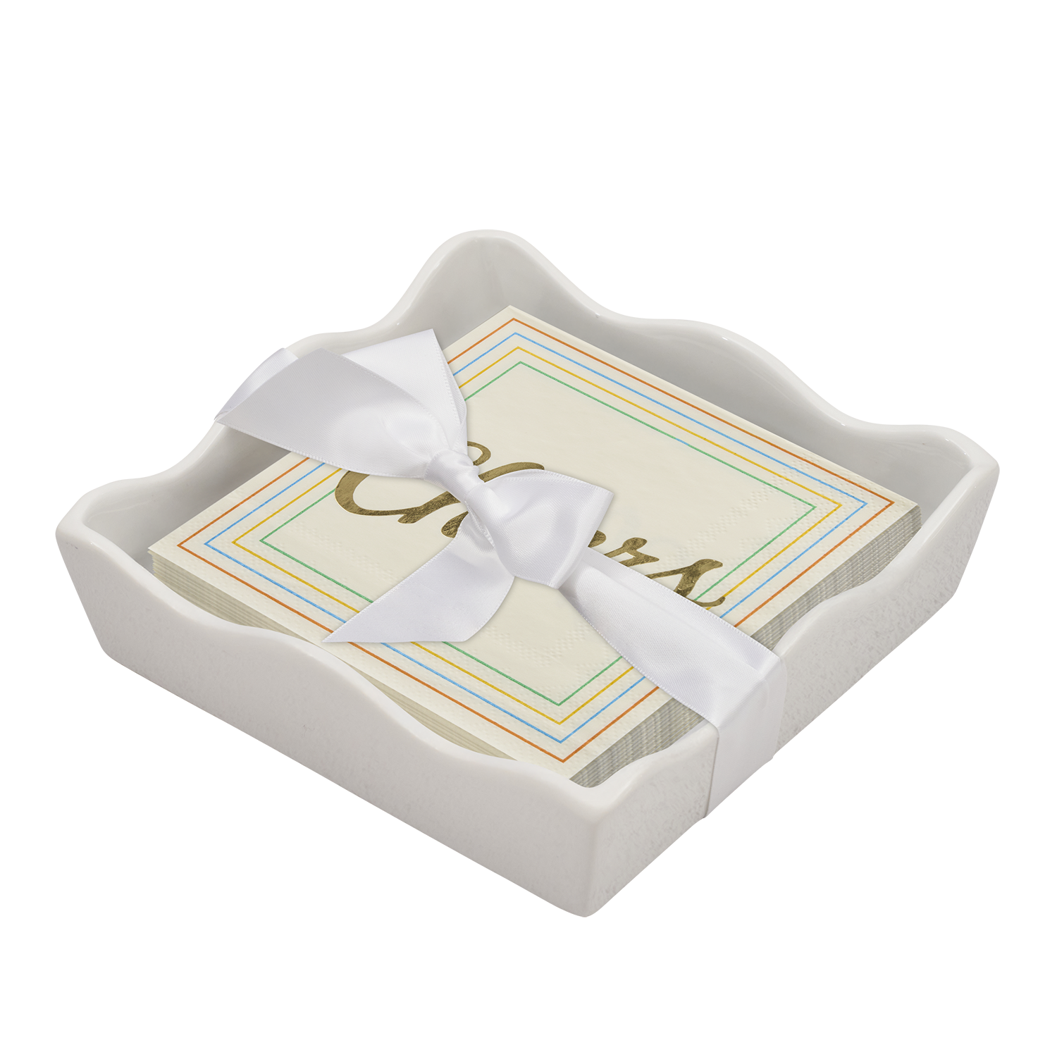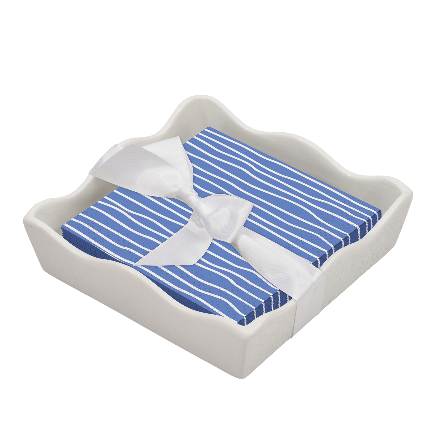 Ceramic Wave Napkin Tray with Cocktail Napkin - Pi
