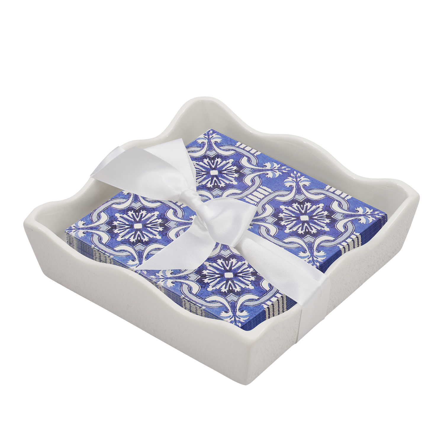 Ceramic Wave Napkin Tray with Cocktail Napkin - Mo