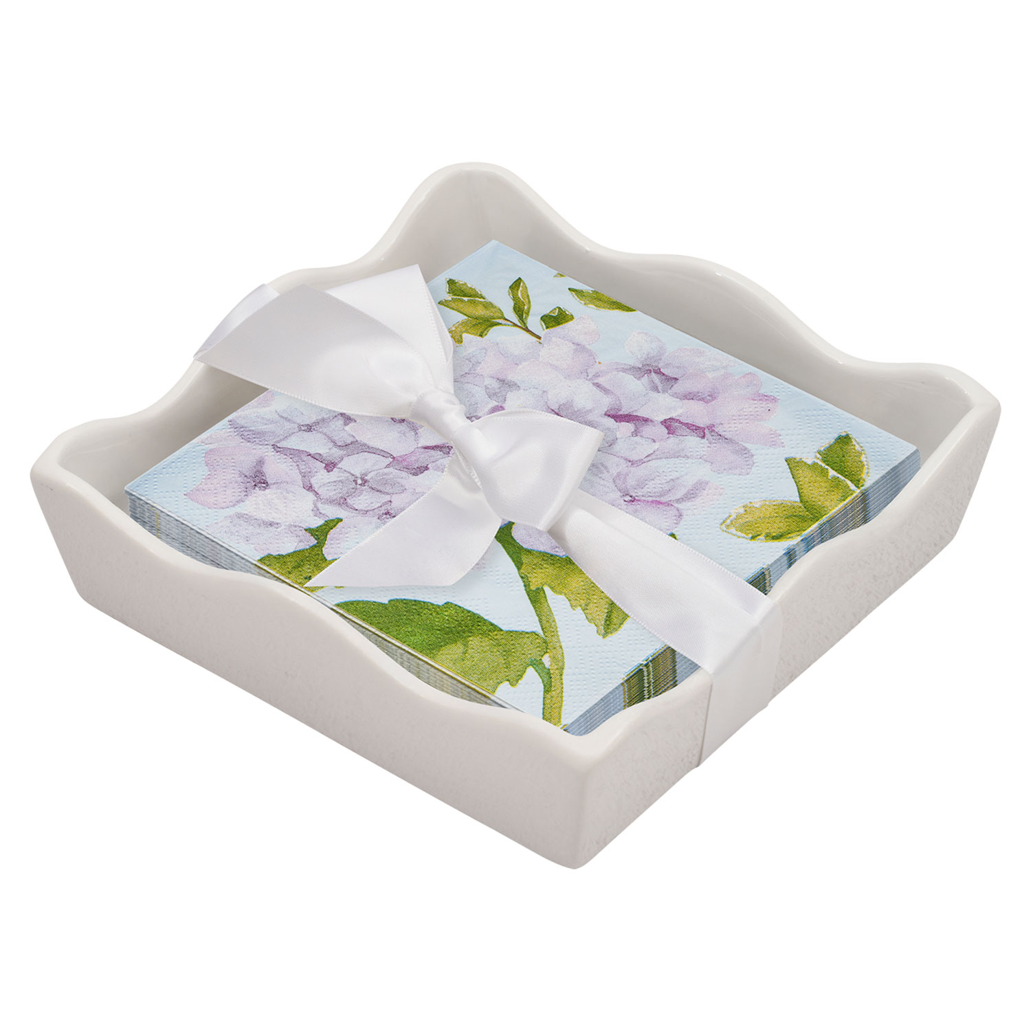 Ceramic Wave Napkin Tray with Cocktail Napkin - Hy