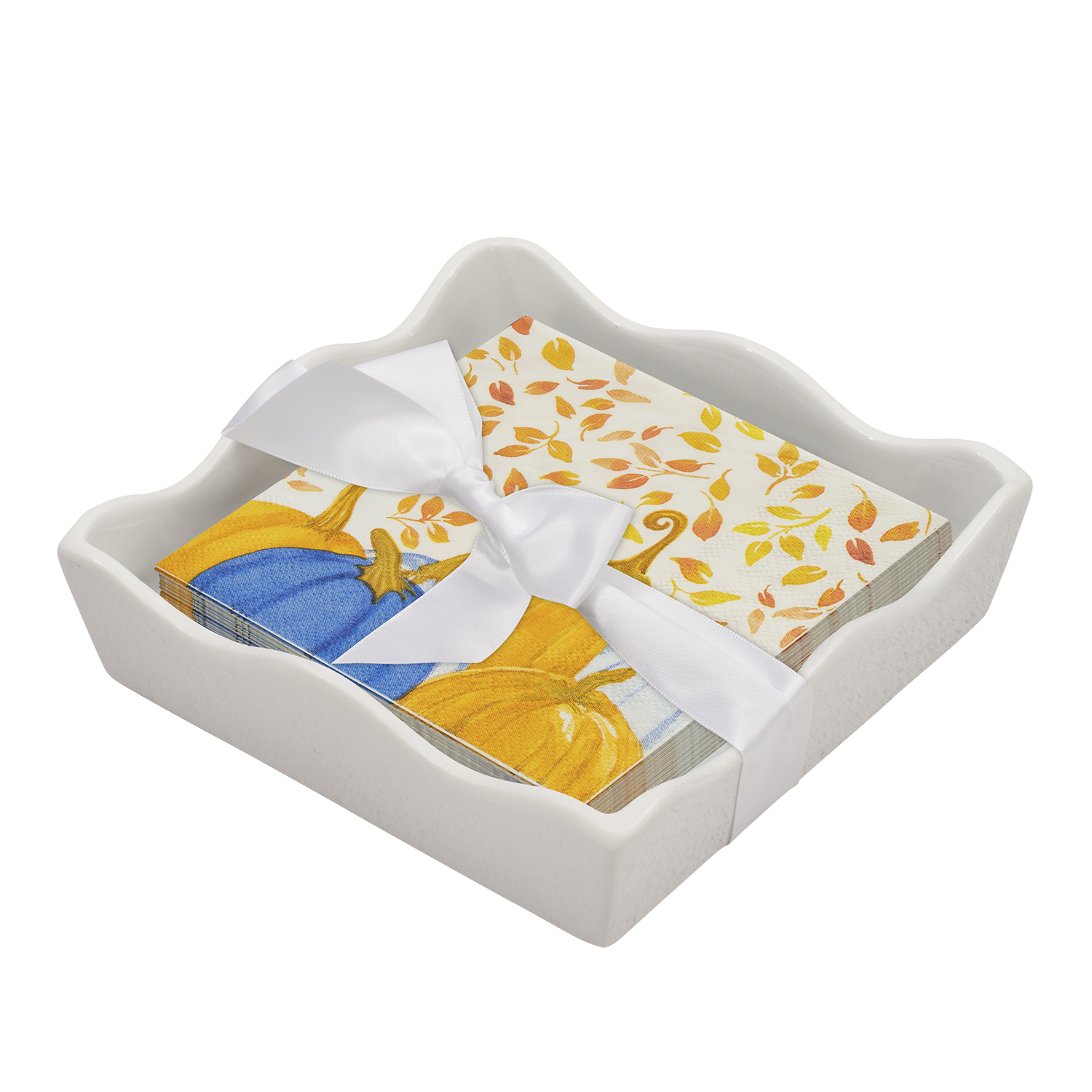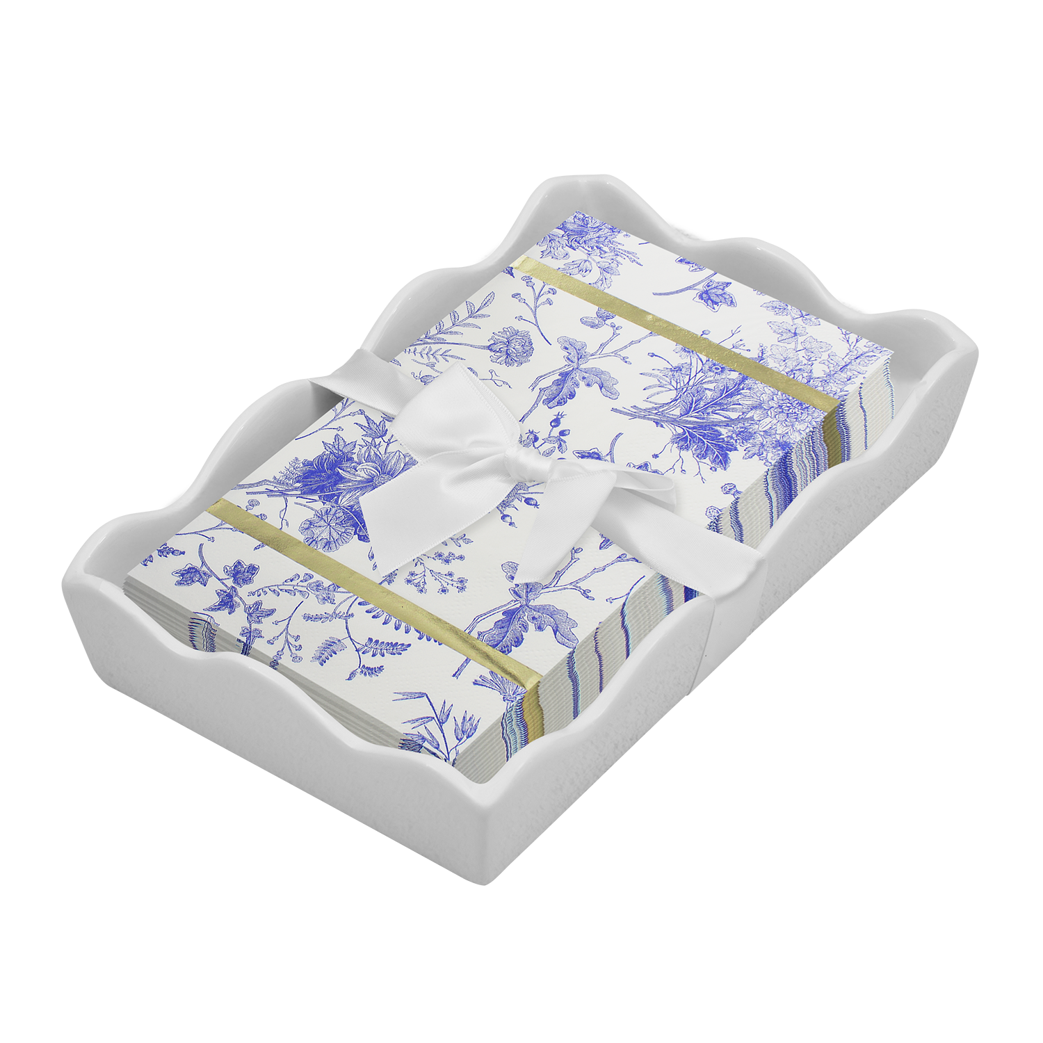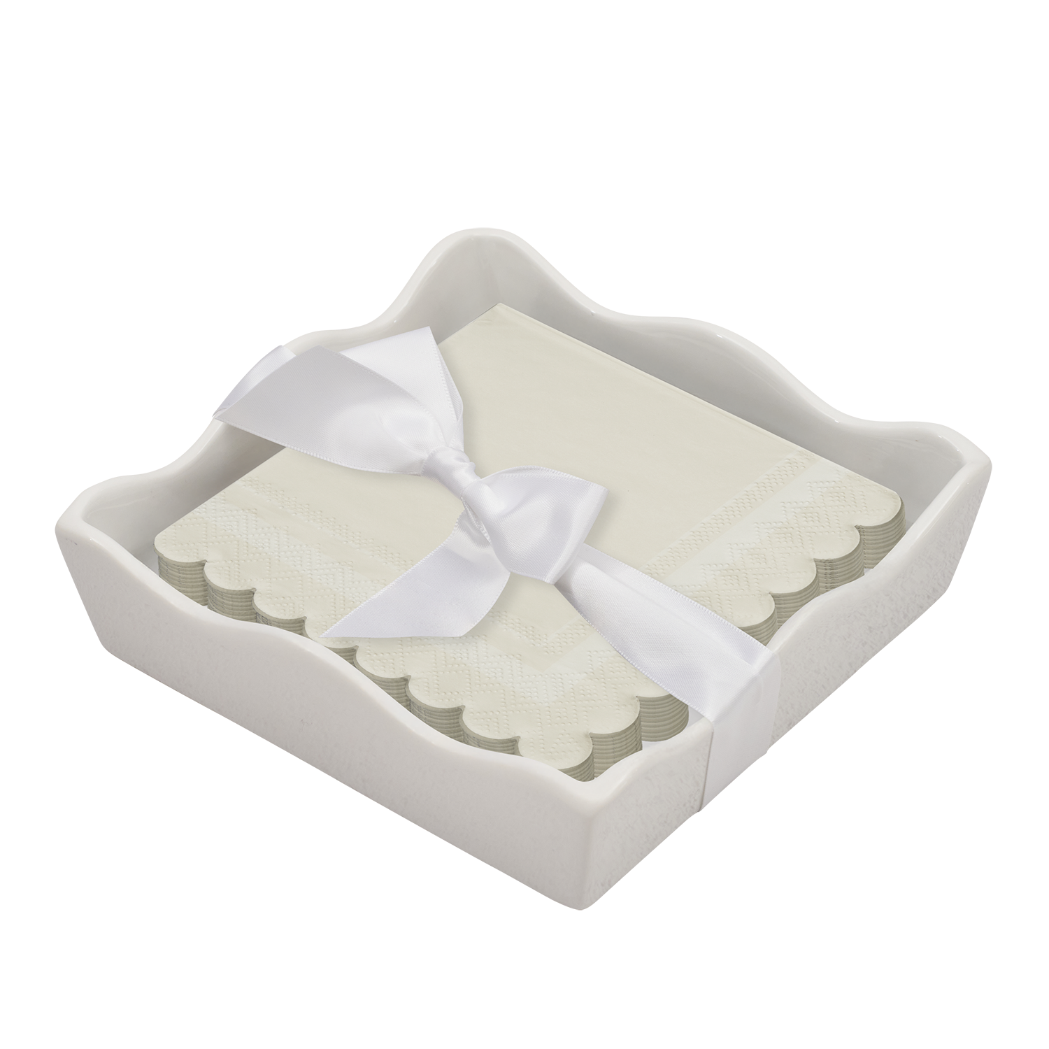 Ceramic Wave Napkin Tray with Cocktail Napkin - Sc
