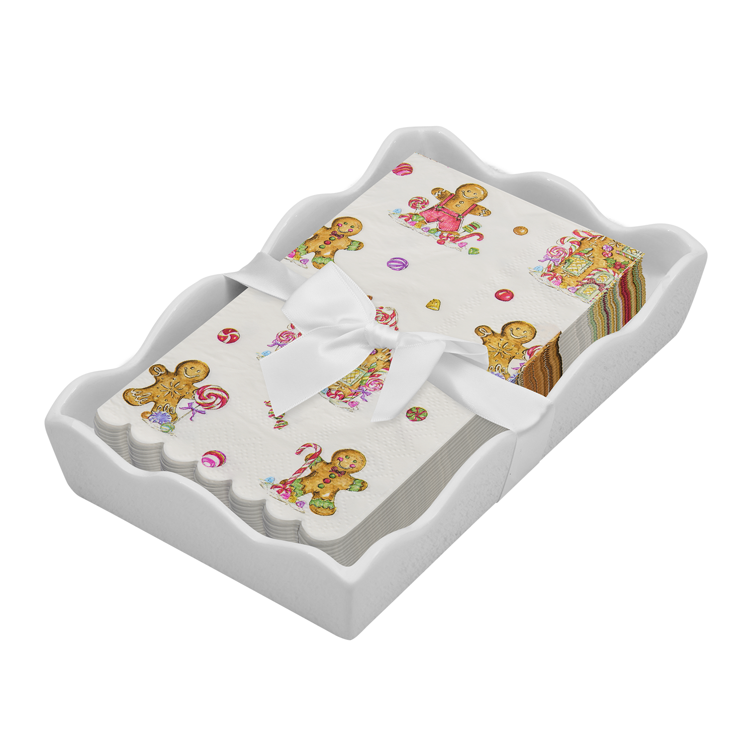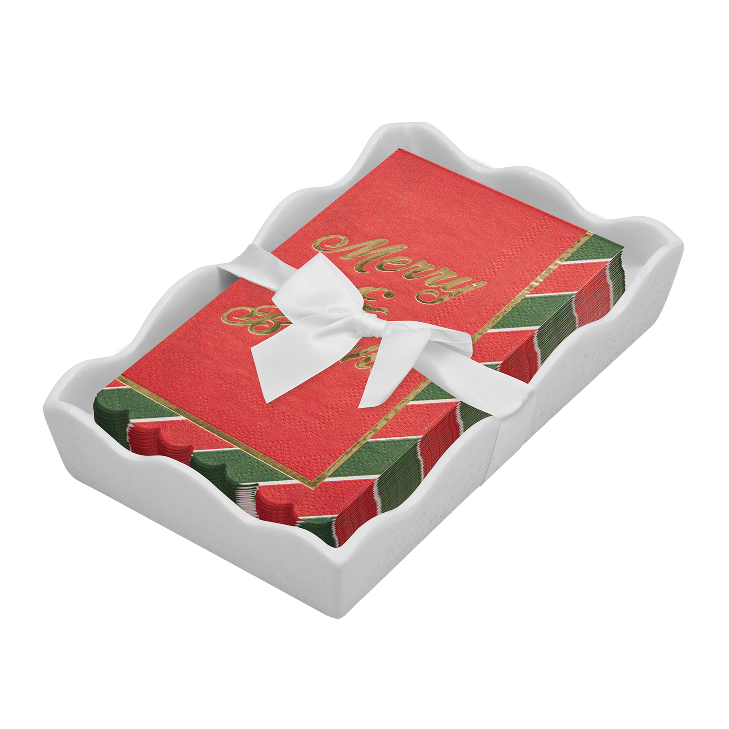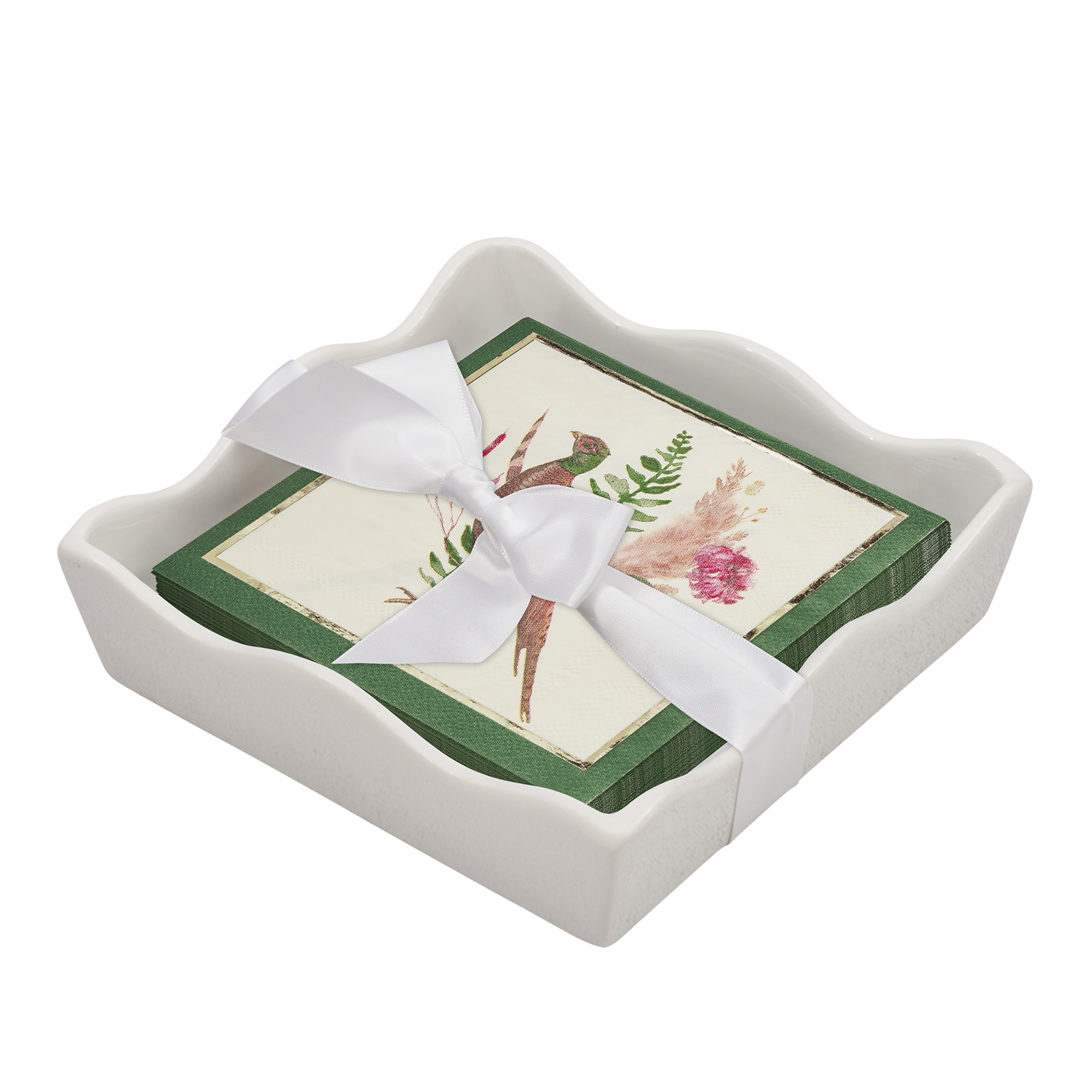 Ceramic Wave Napkin Tray with Cocktail Napkin - Sc