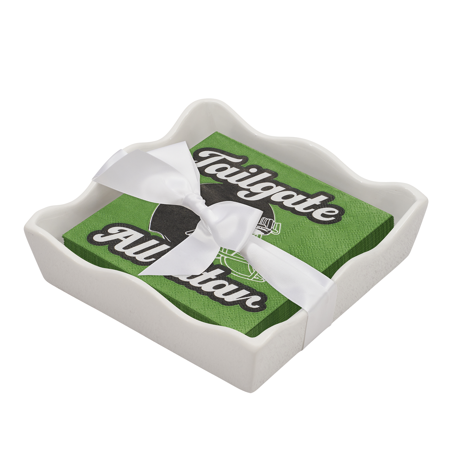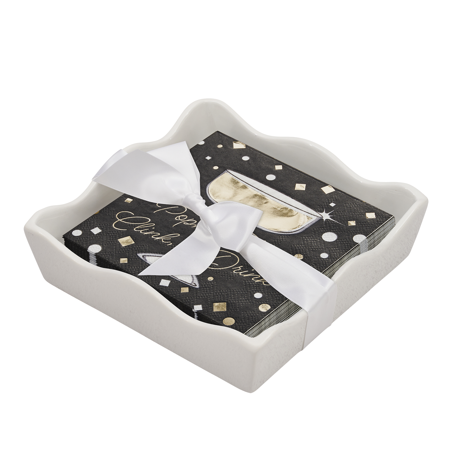 Ceramic Wave Napkin Tray with Cocktail Napkin - Go
