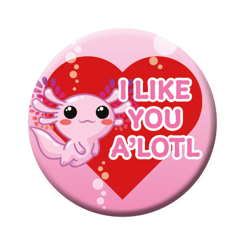 Axolotl - I Like You A’Lotl Round Pinback Button (