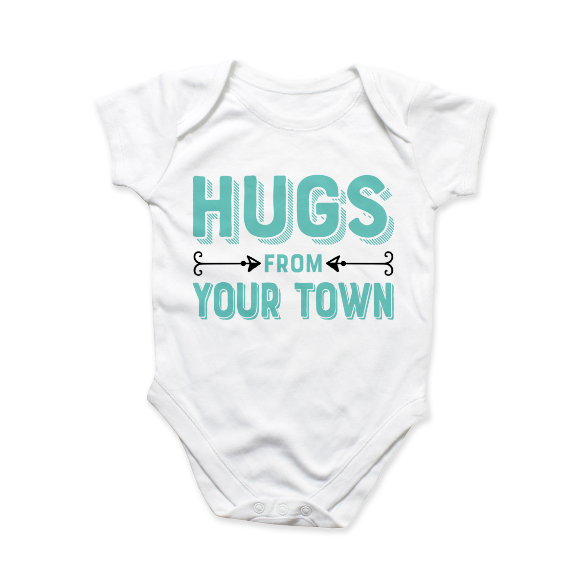 White Onesie - Hugs - Aquamarine - Size L/12mo