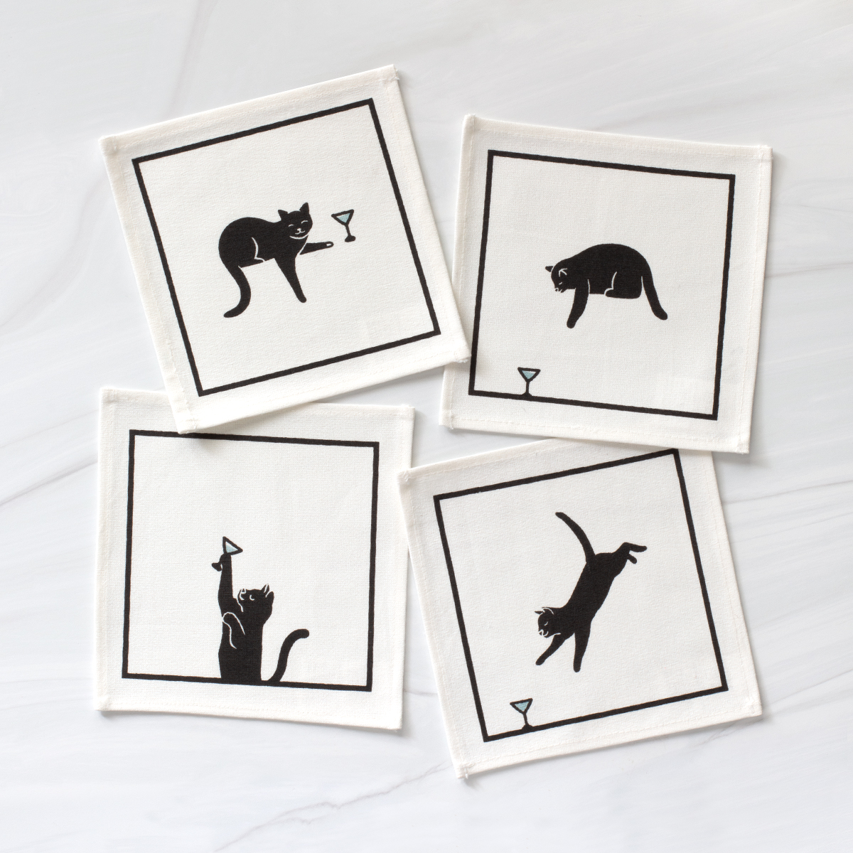 Black Cat Martini Cocktail Napkin Set