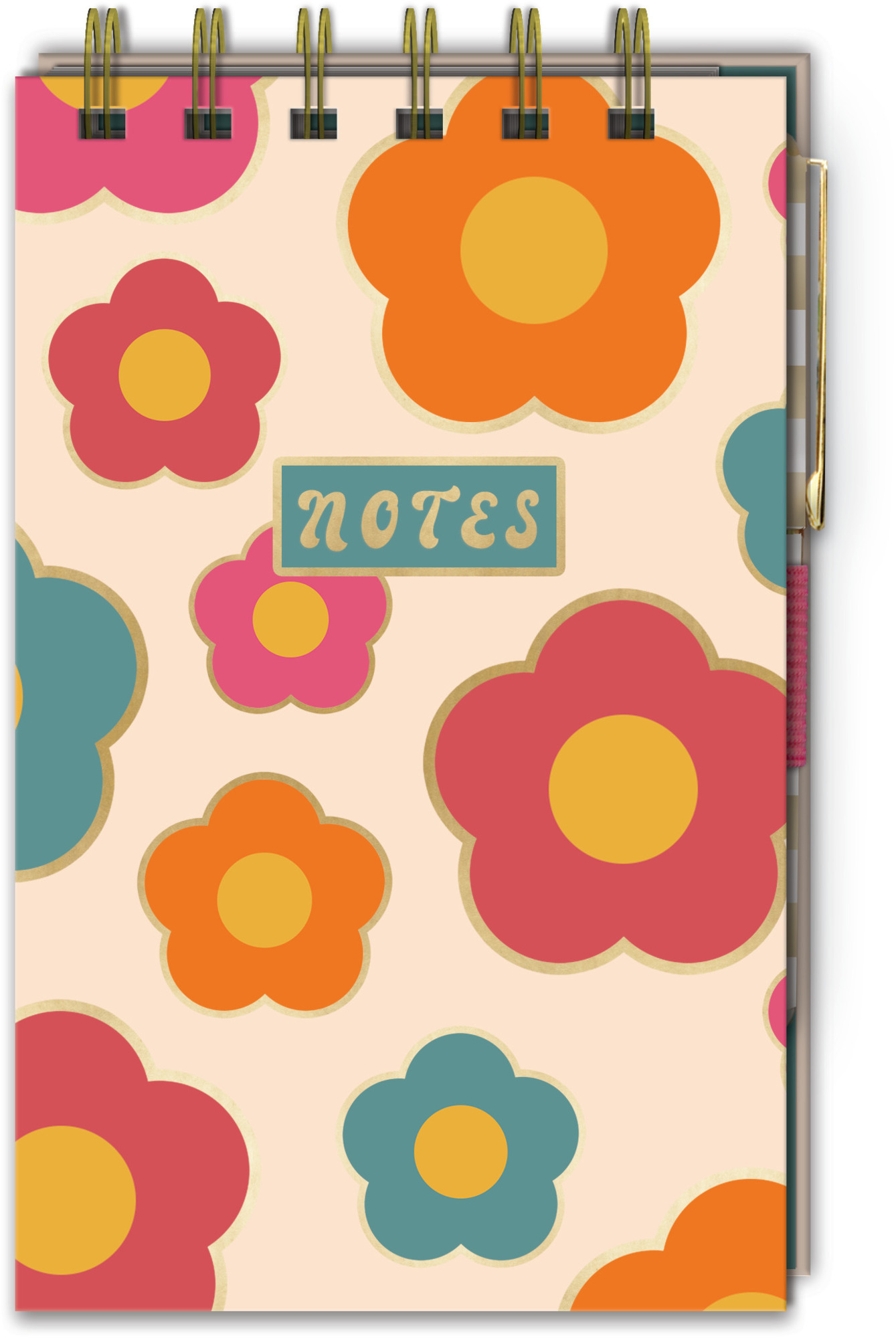 GROOVY FLOWERS NOTEPAD SPIRAL W PLSTC PEN-125SH