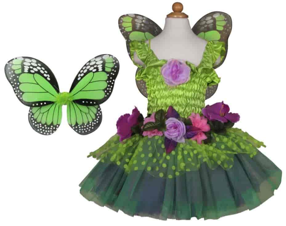 Fairy Blooms Deluxe Dress & Wings, Green, Size 3-4