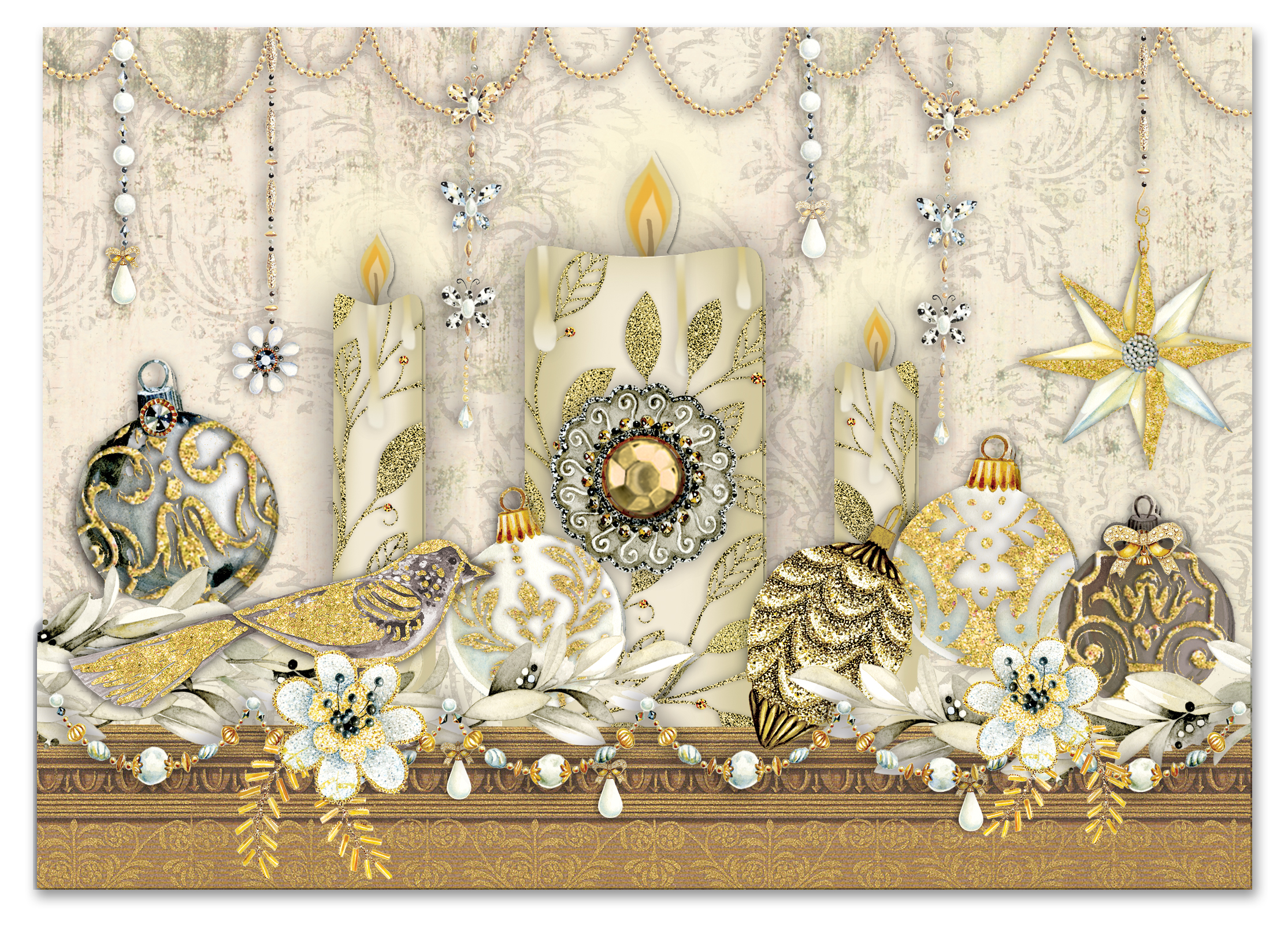 CANDLELIGHT MANTEL HOLIDAYCARD 2-LAYER 5X7-12CT