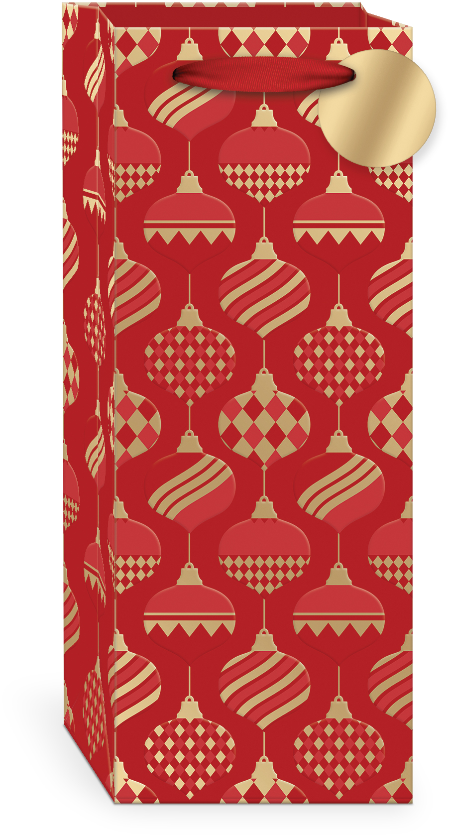 ORNAMENTS RED GIFTBAG WINE RIBBON HANDLE