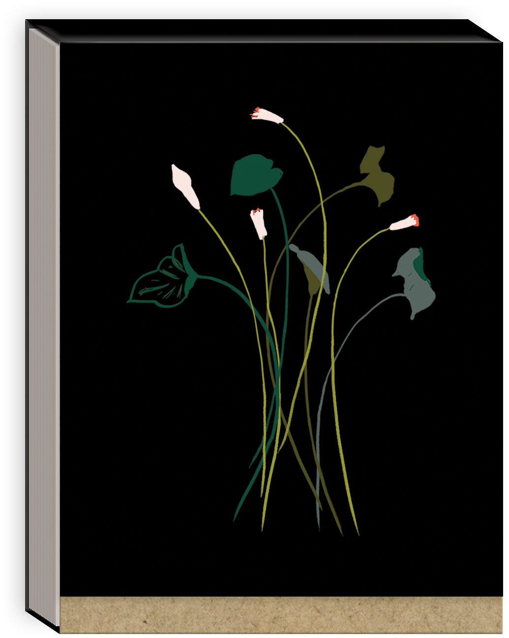 DELICATE FLORAL BLACK NOTEPAD POCKET RCYCLD KRAFT-