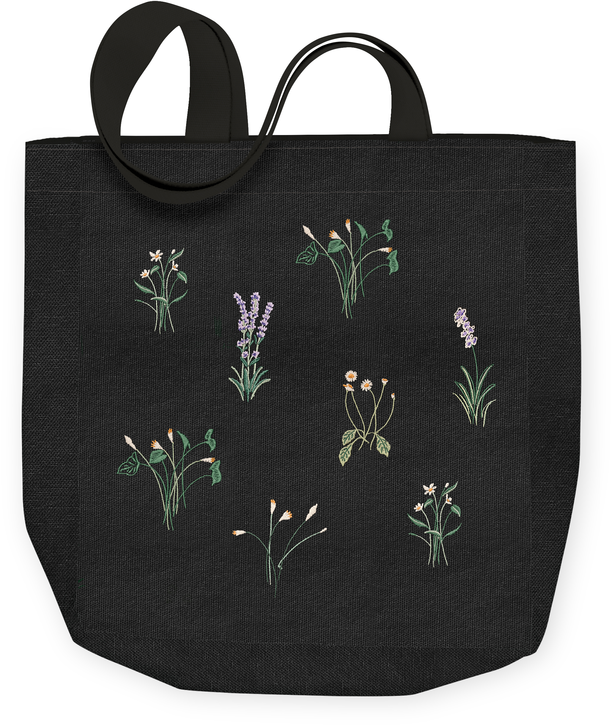 DELICATE FLORAL BLACK TOTE CANVAS BAG 15X16 EMBROI