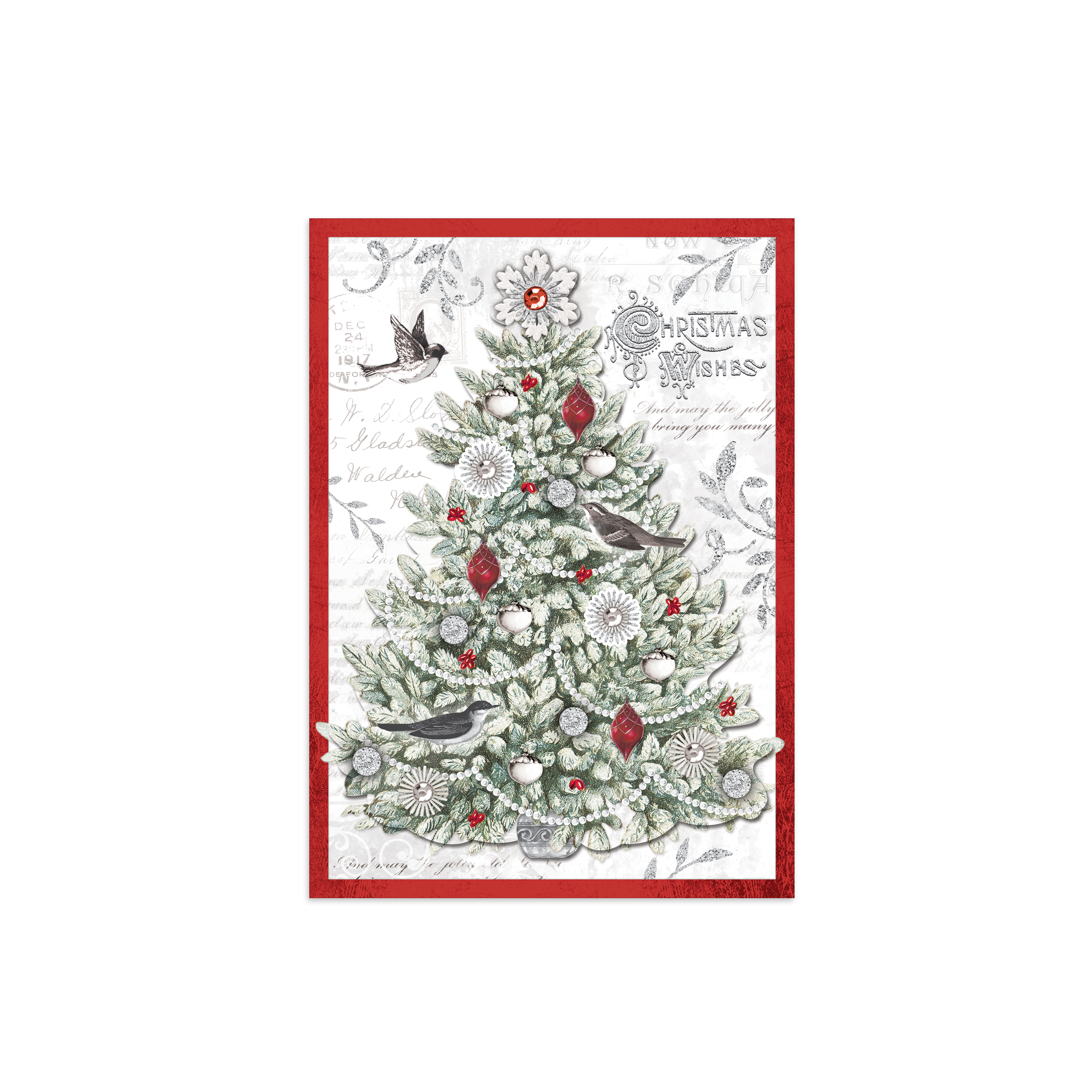 SILVER TREE HOLIDAYCARD 2-LAYER 5X7-12CT