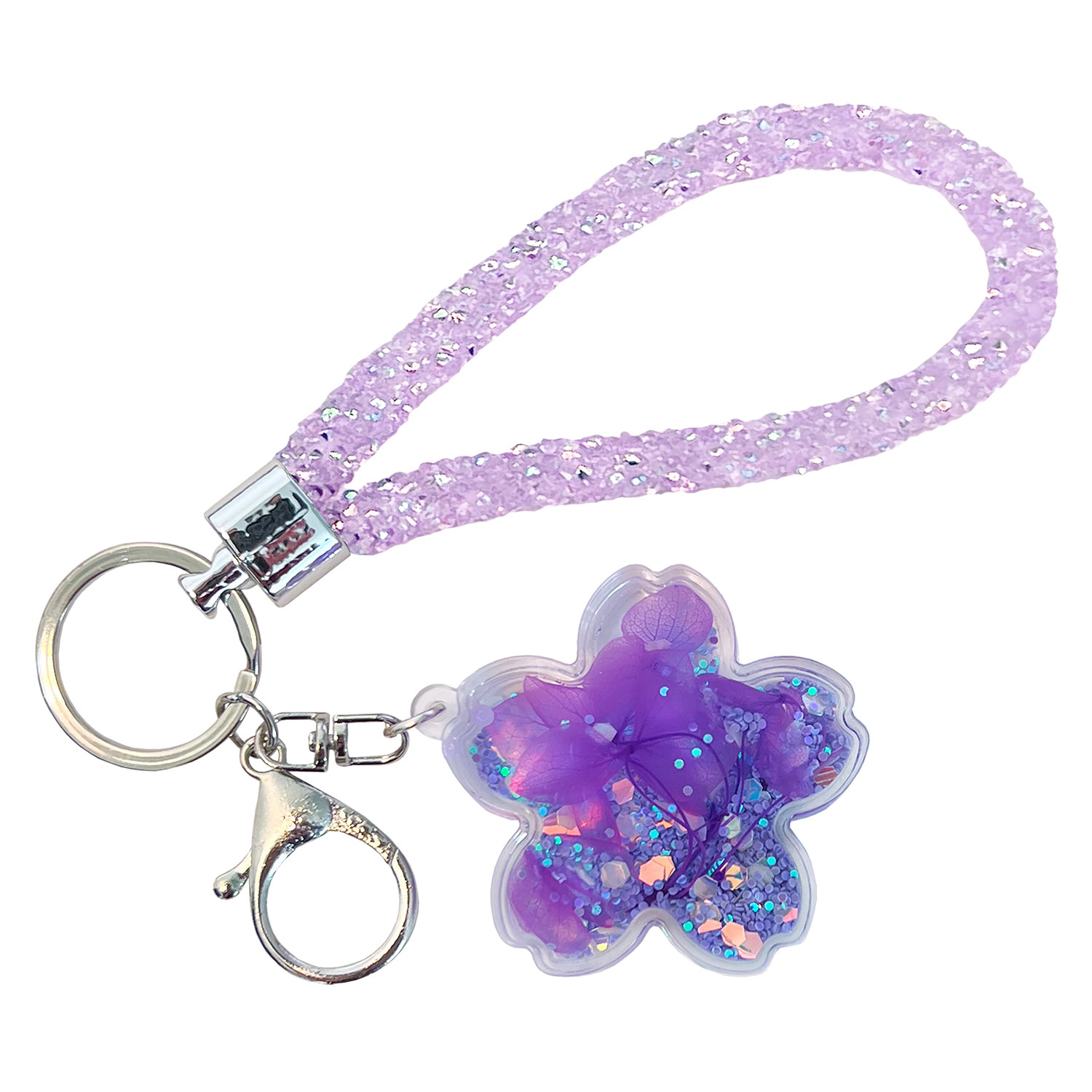 GLITTER PETAL KEY CHARM - PURPLE