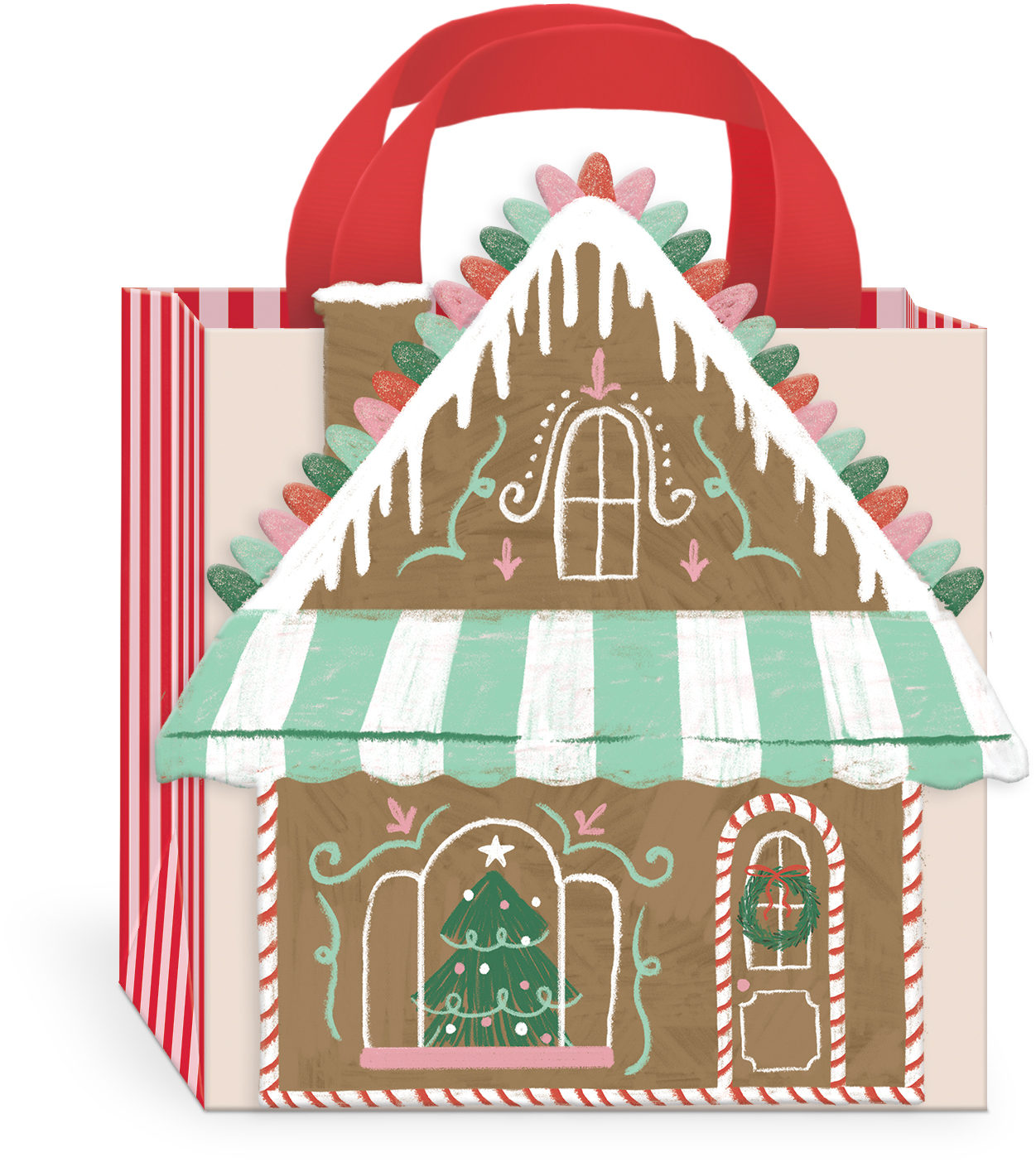 N POLE GINGERBREAD HOUSE GIFTBAG XSM SQR TIP ON 5.
