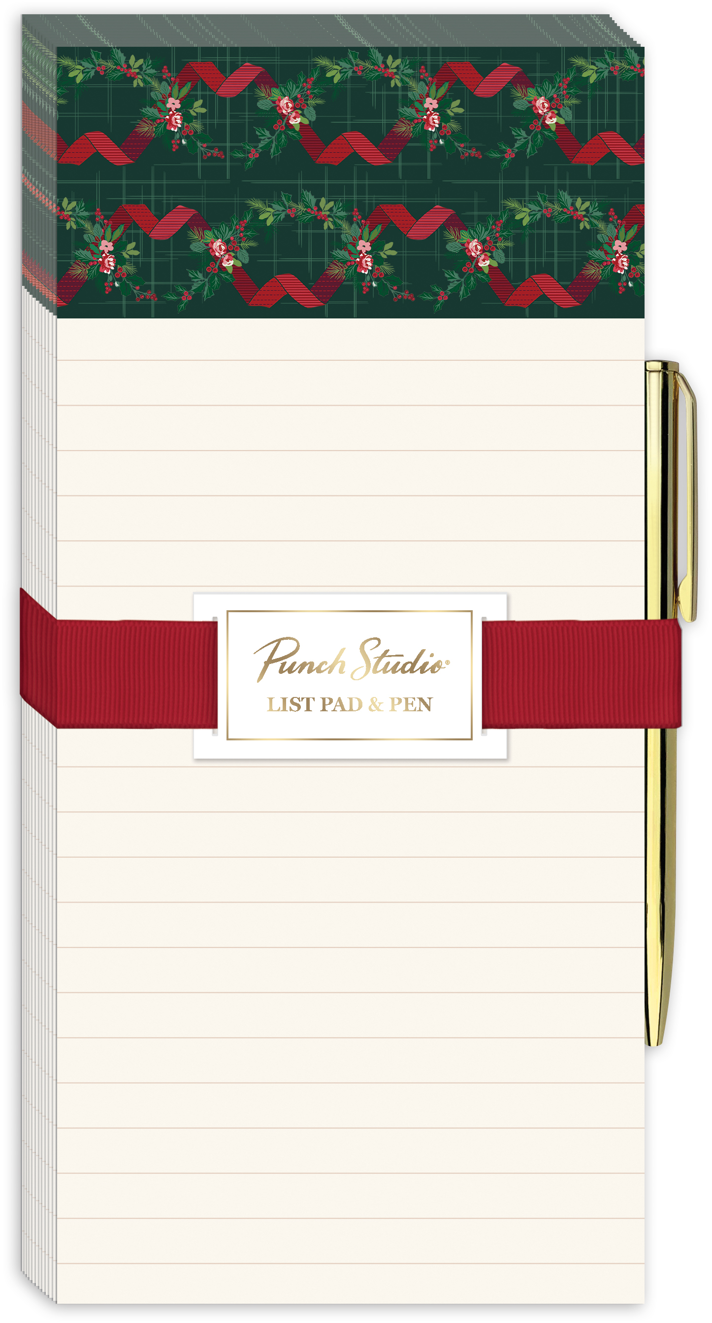 WINTER FLORALS GREEN NOTEPAD MGNTC W METAL PEN-100