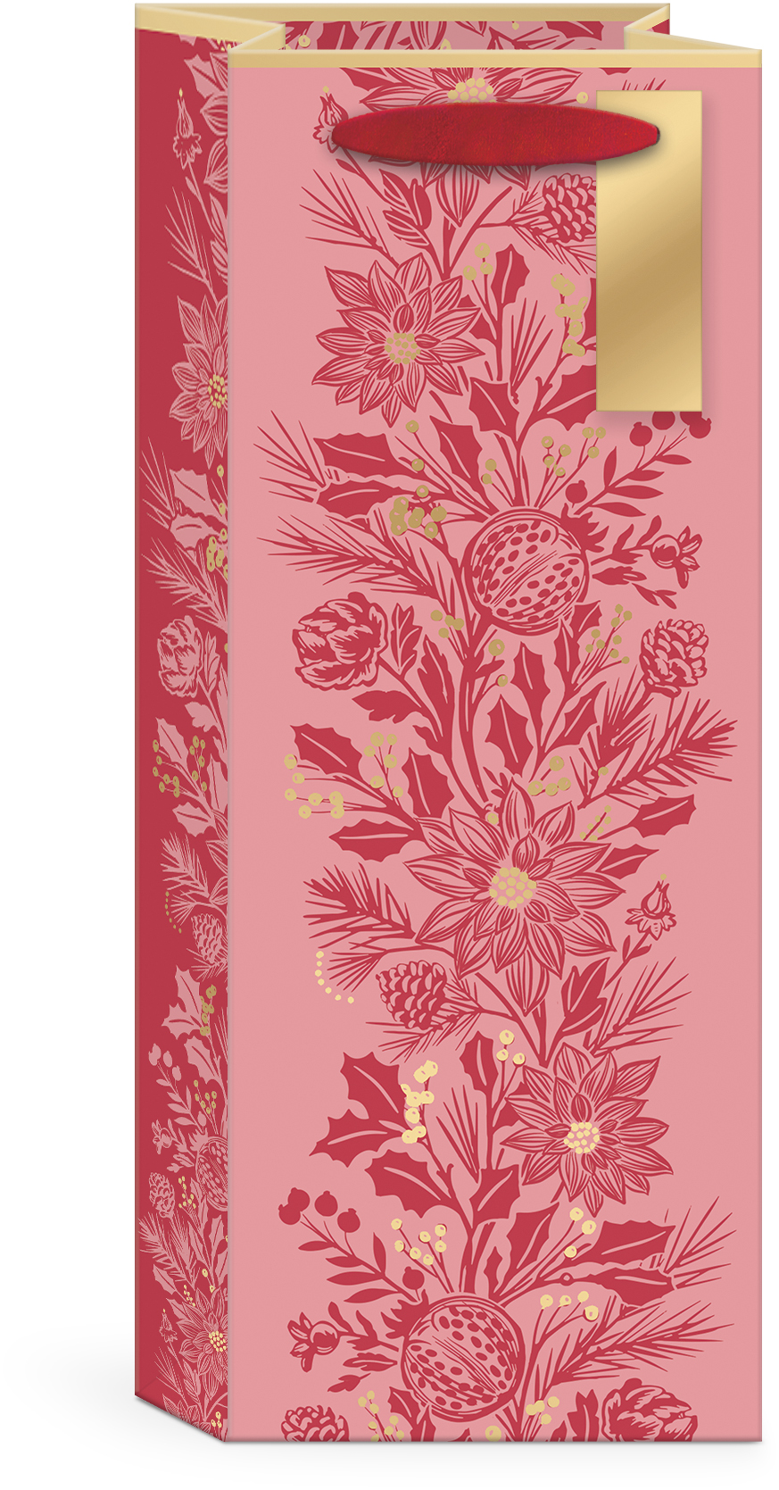 BOUGHS AND BERRIES RED GIFTBAG WINE RIBBON HANDLE