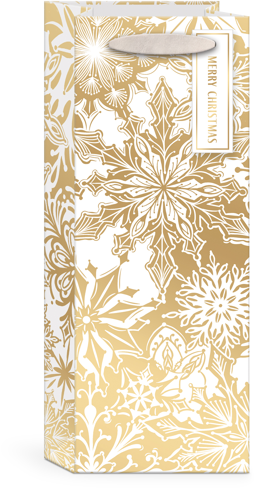 GOLDEN FOLIAGE SNOWFLAKE GIFTBAG WINE RIBBON HANDL