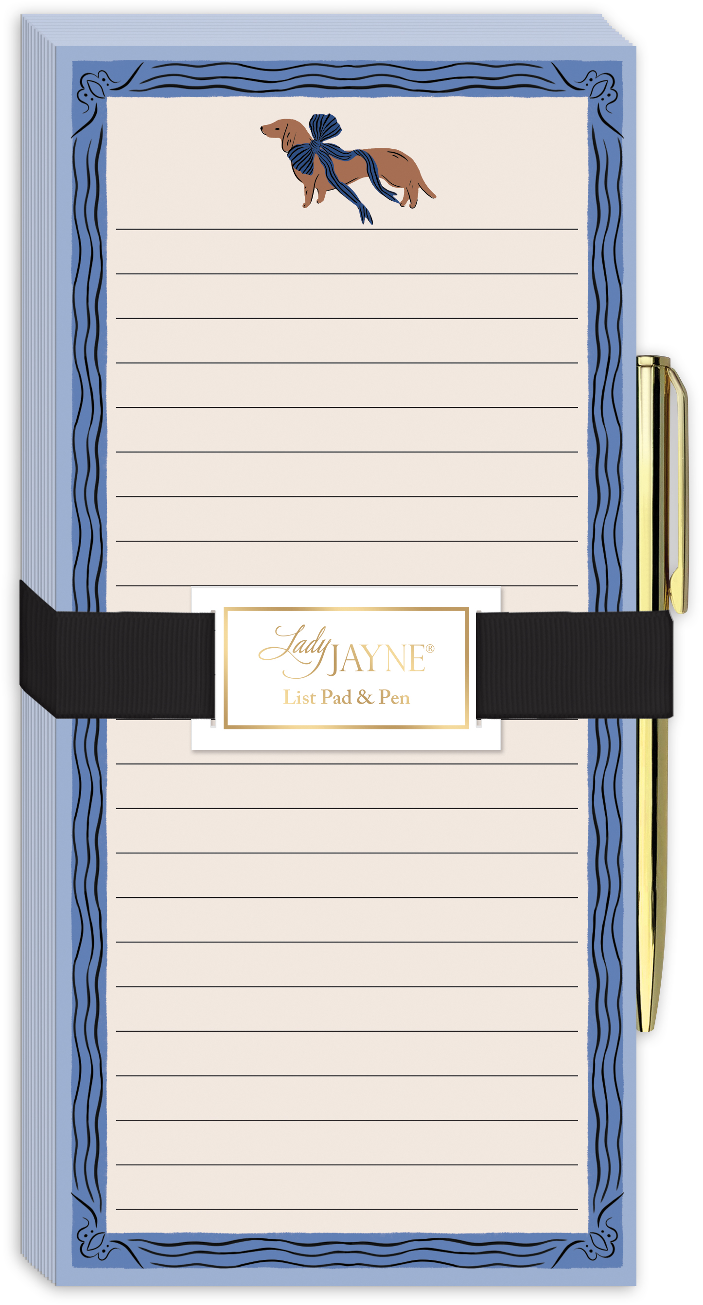 RIBBON TAILS BROWN DACHSHUND NOTEPAD MGNTC W METAL