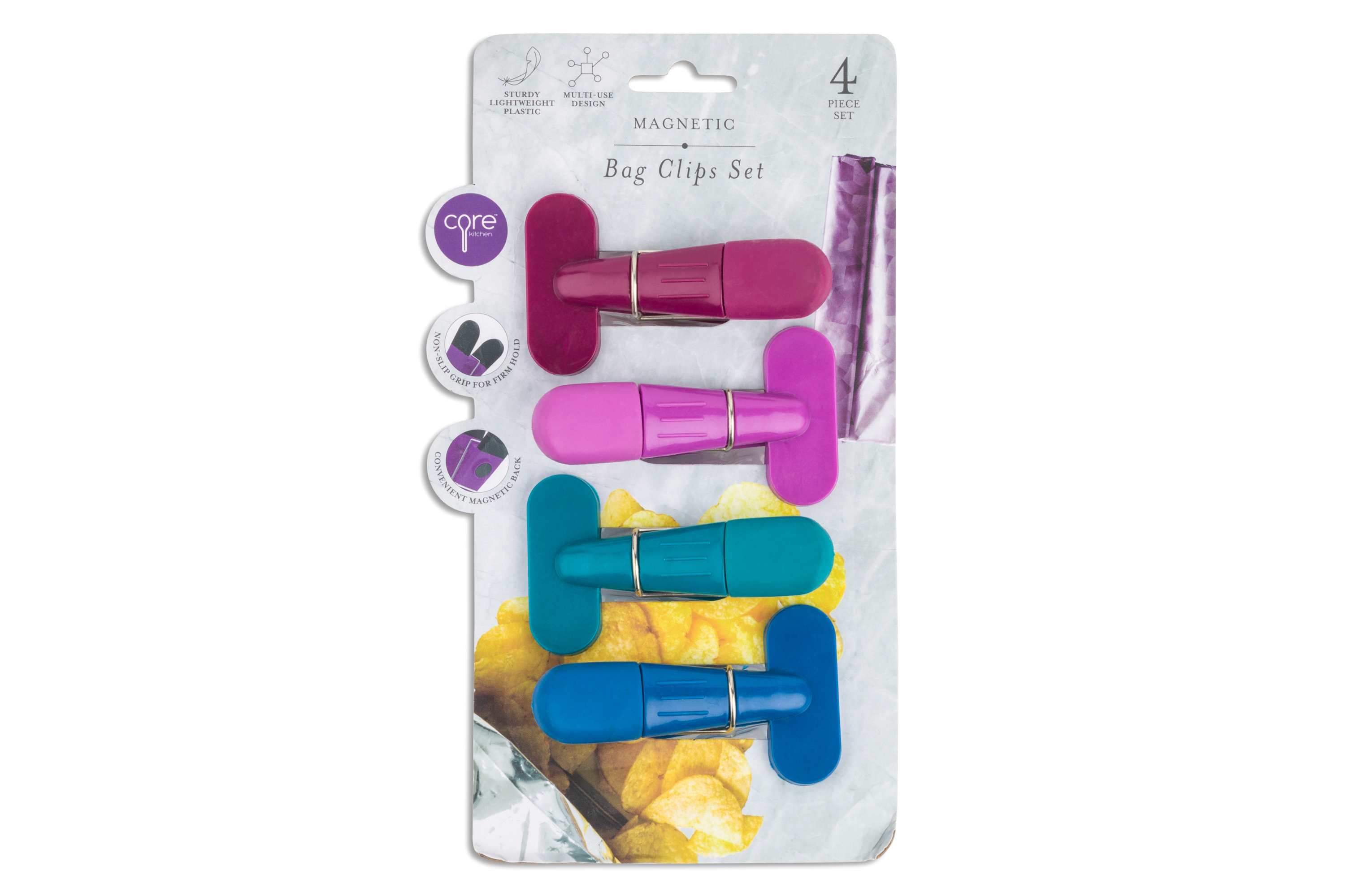 4pc Magnetic Pantry Bag Clips - GN/AM/DJ/BL