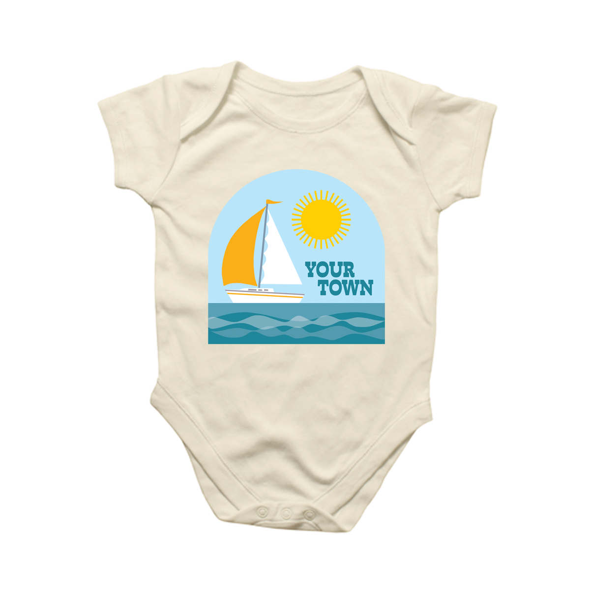 Natural Onesie - View - Sailboat - Size L/12mo