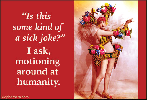 Is this some kind of sick joke? I ask, motioning a