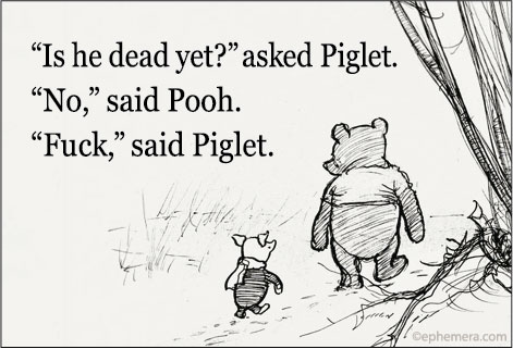 Is he dead yet? Asked Piglet. No, said Pooh. Fuck,