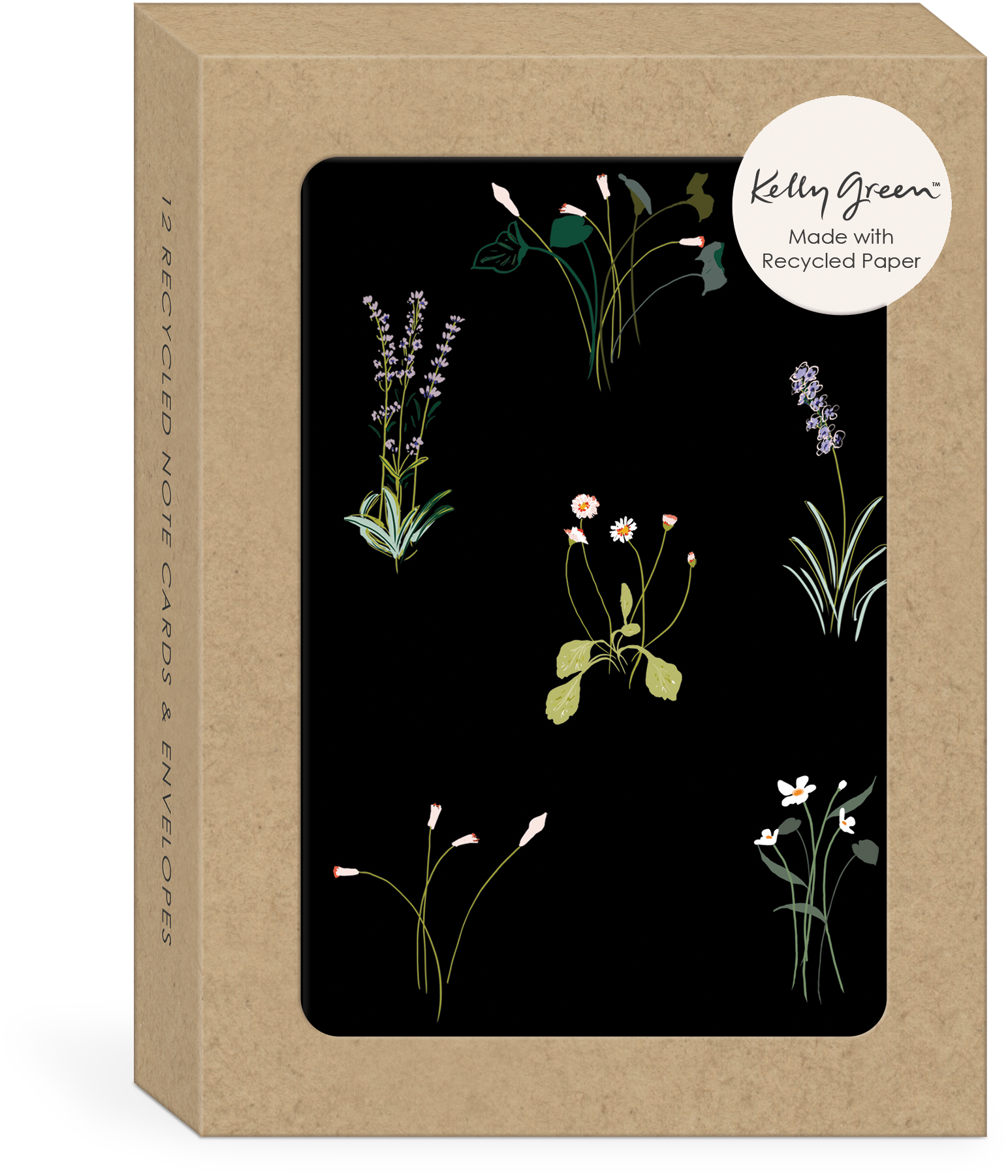 DELICATE FLORAL BLACK NOTECARD RCYCLD BOXED 3.5X5-