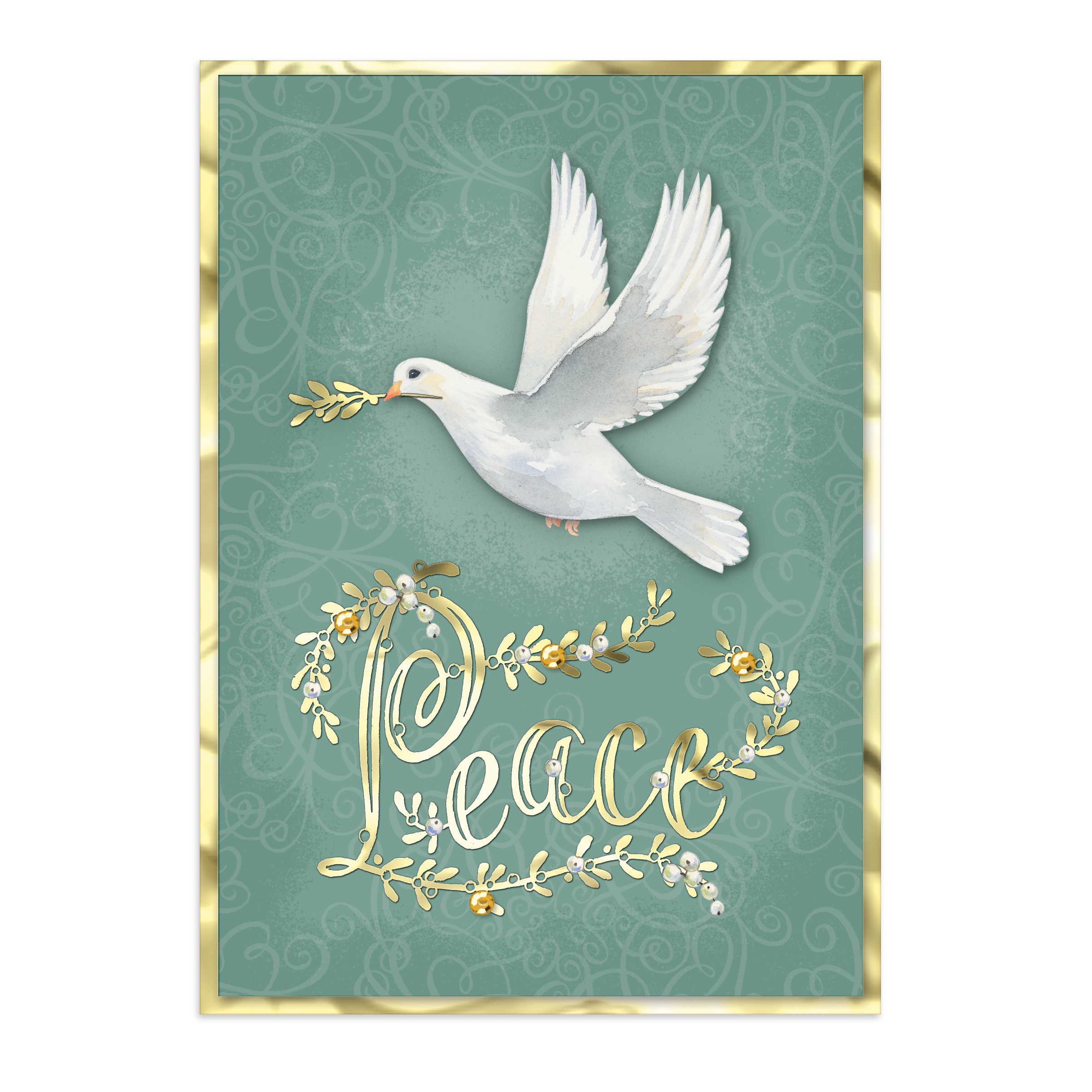 GREEN PEACE DOVE HOLIDAYCARD 2-LAYER 5X7-12CT
