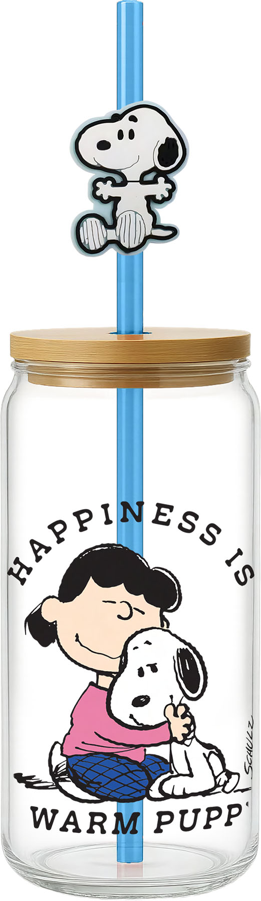 SNOOPY HAPPINESS GLASS W/STRAW