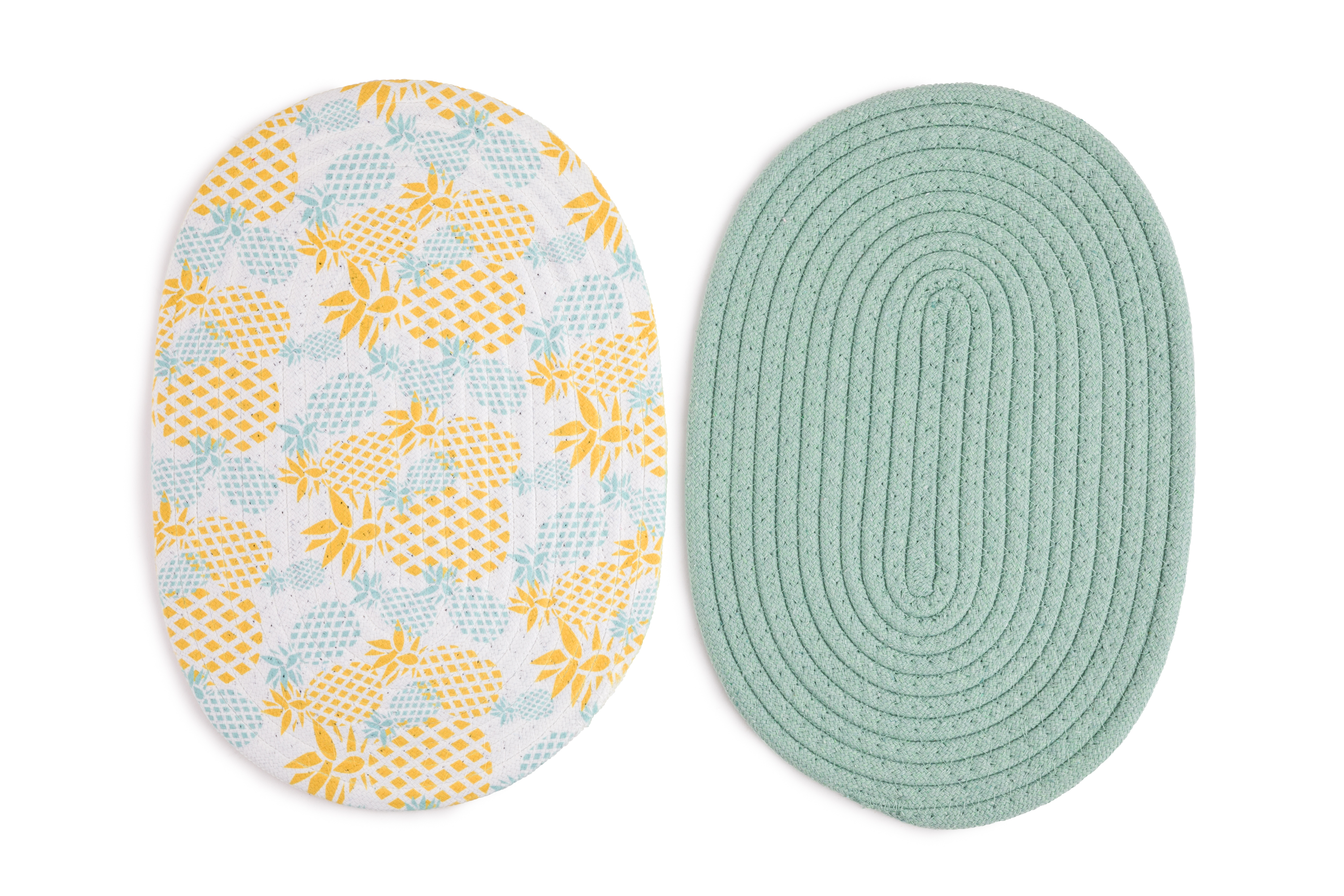 2pc Printed Asst Oval Woven Trivets - Pineapples