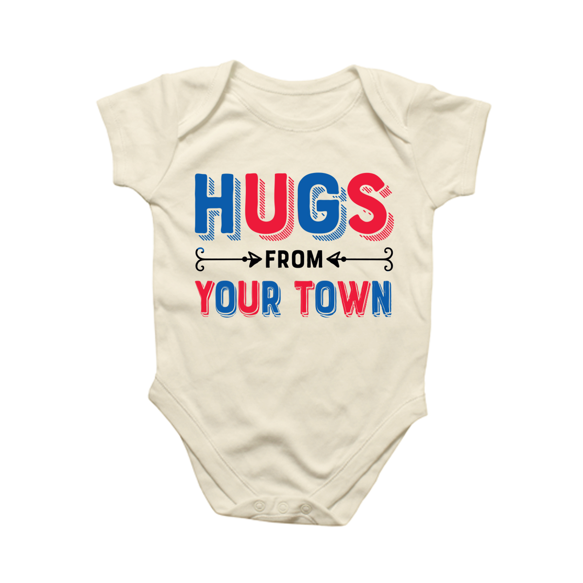 Natural Onesie - Hugs - Red & Royal - Size L/12mo