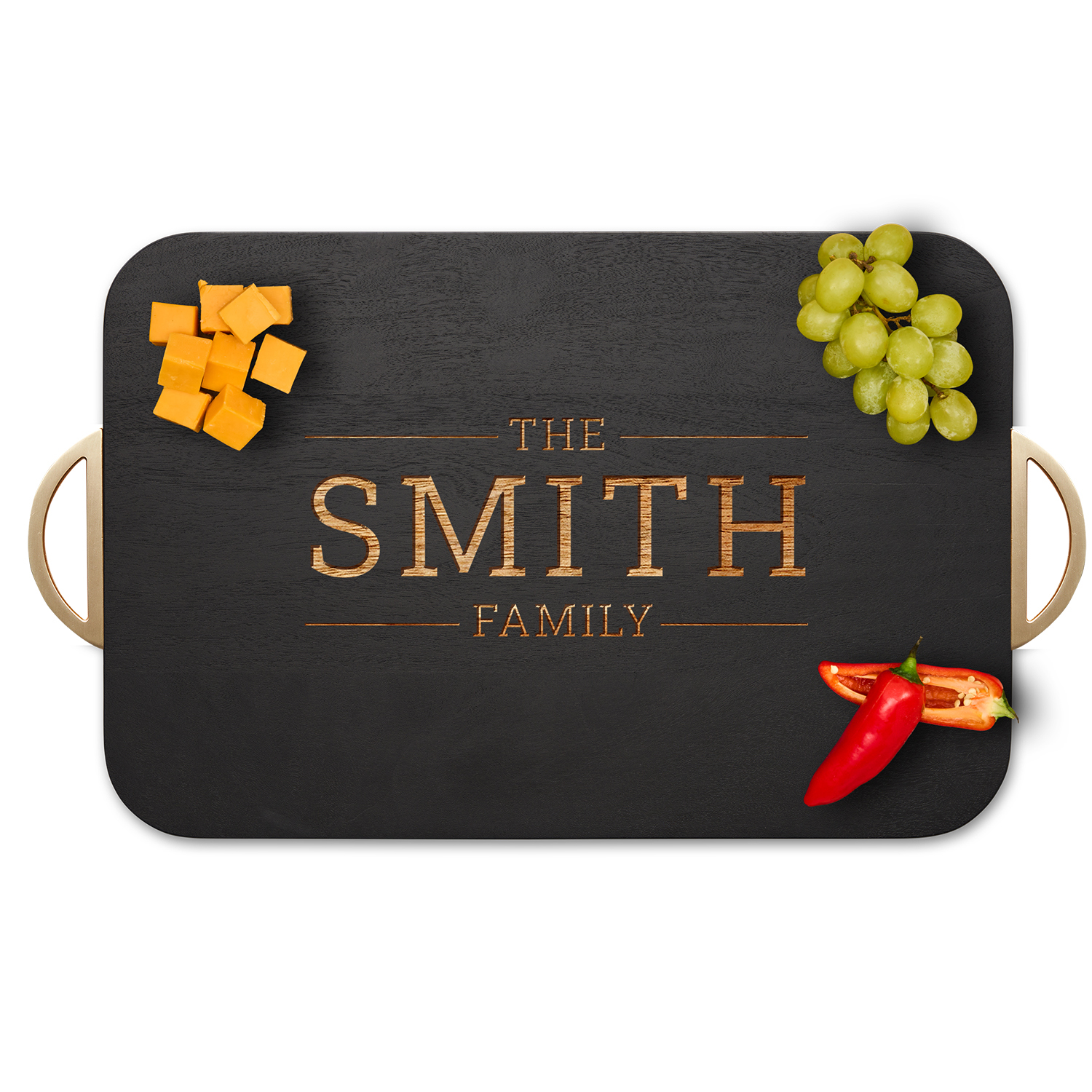 18x12" Black Acacia Rounded Corners w/ Gold Handle