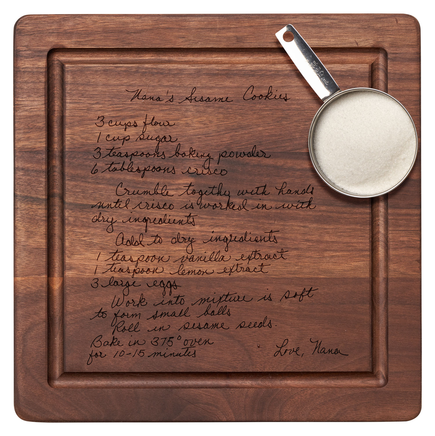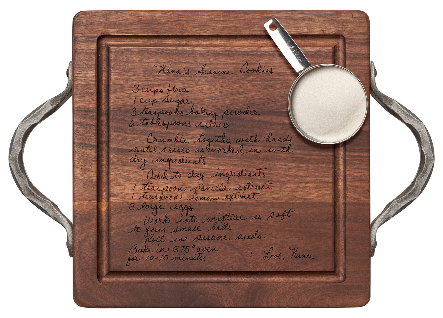 12x12" Walnut Square w/ Handles - Recipe