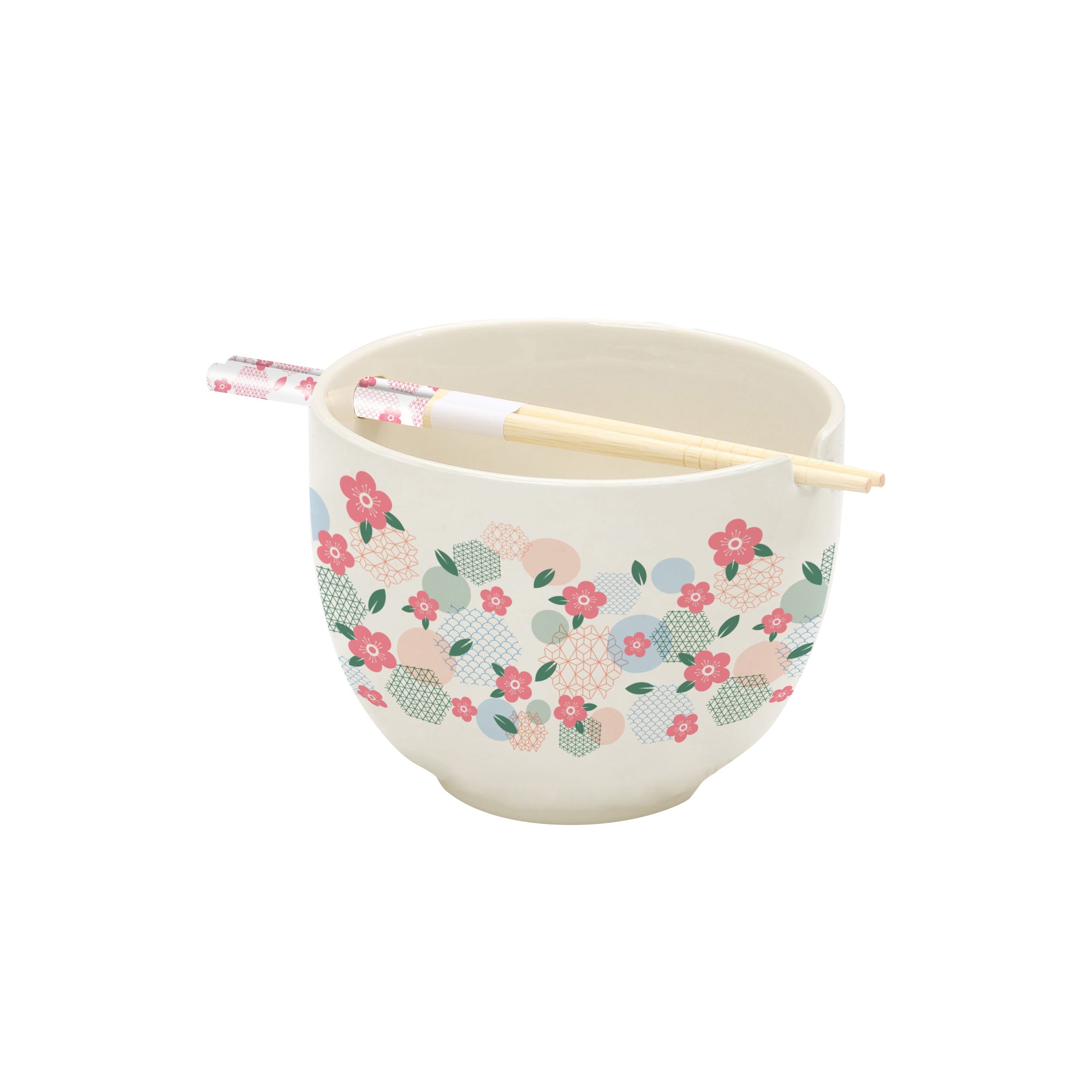 Geometric Florals Ramen Mug & Chopsticks Set (21oz