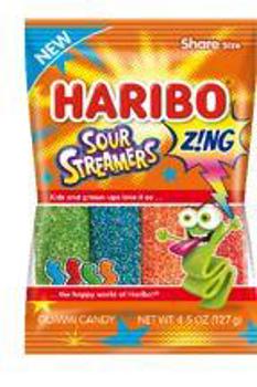 Haribo Peg Bag Zing Sour Streamers 4.5oz 12 pcs @
