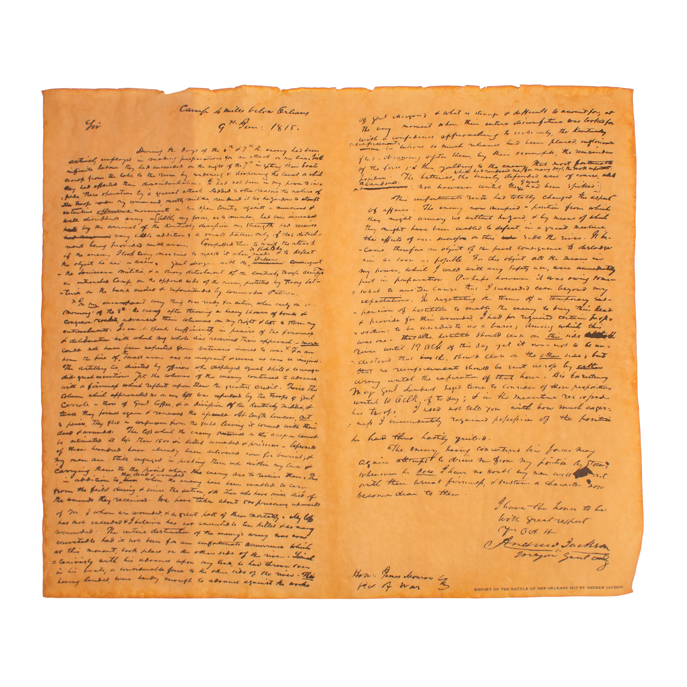 ANDREW JACKSONS REPORT OF NEW ORDLEANS RIBBONED