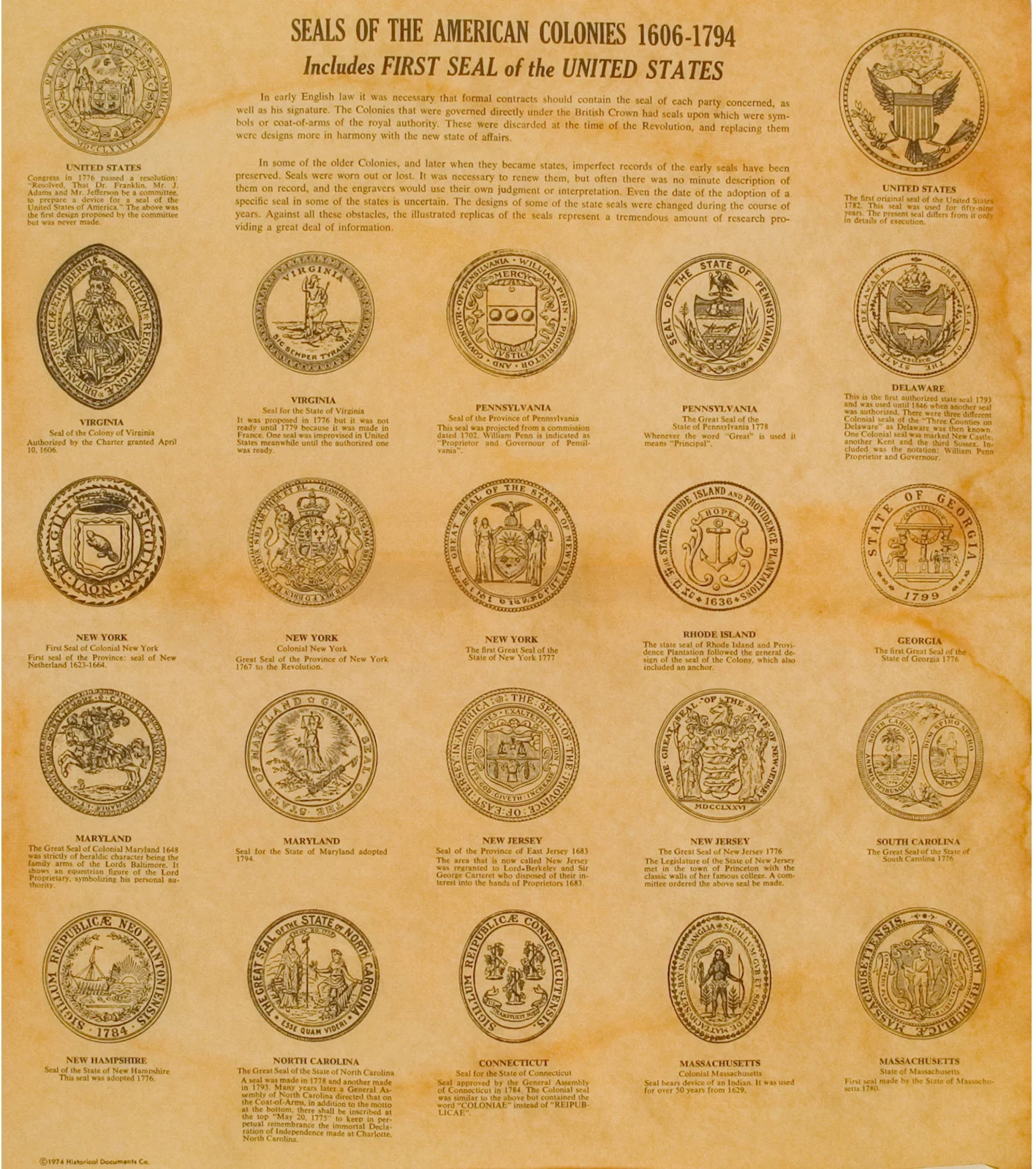 SEALS OF AMERICAN COLONIES RIBBONED