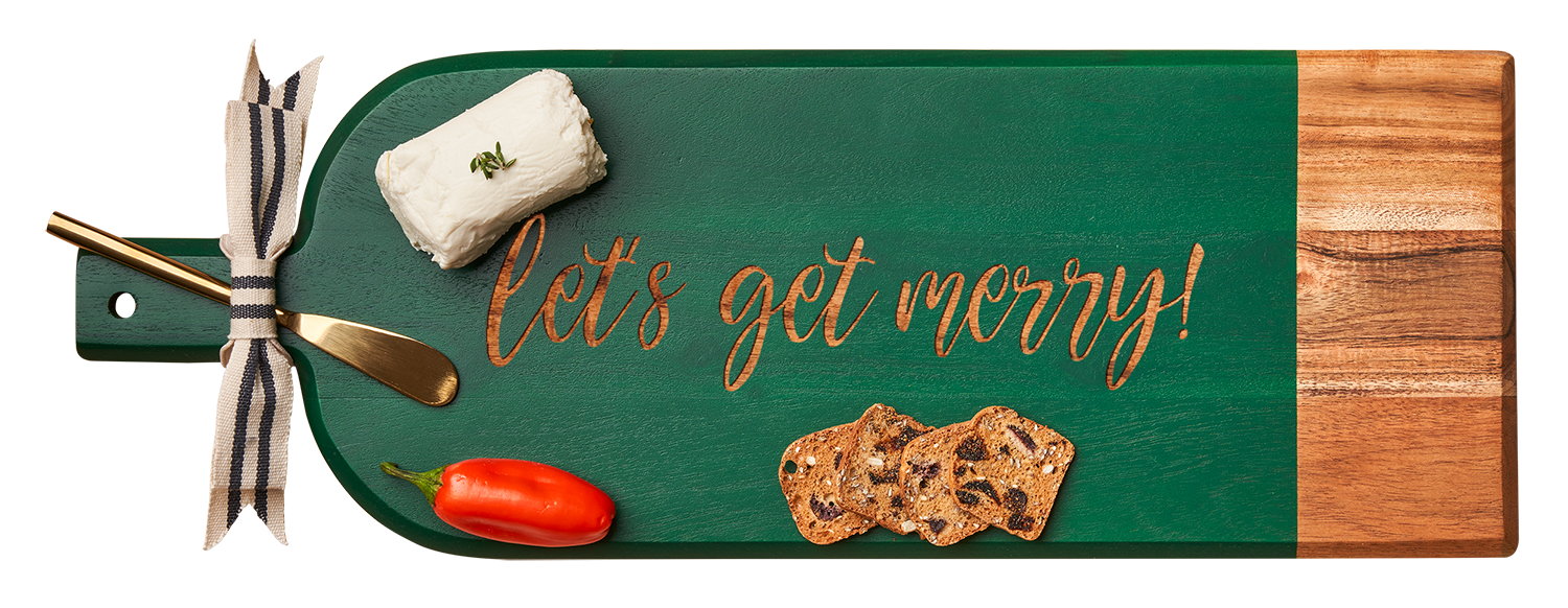 20x7" Green Acacia Bevel Board Long w/ Gold Spread