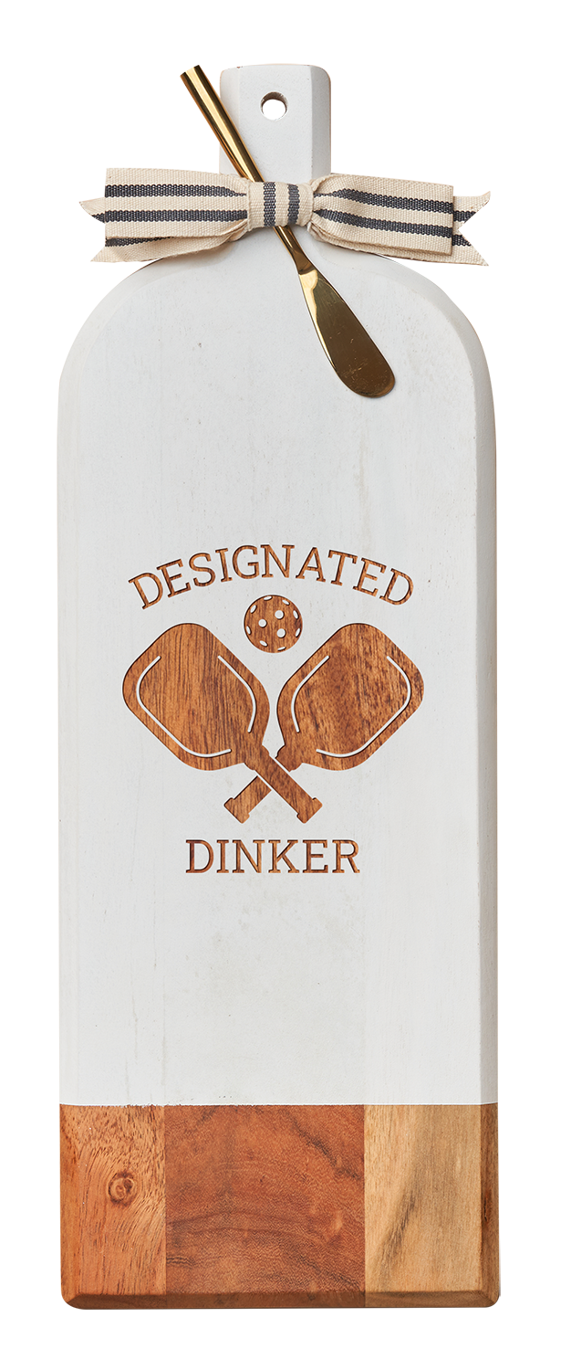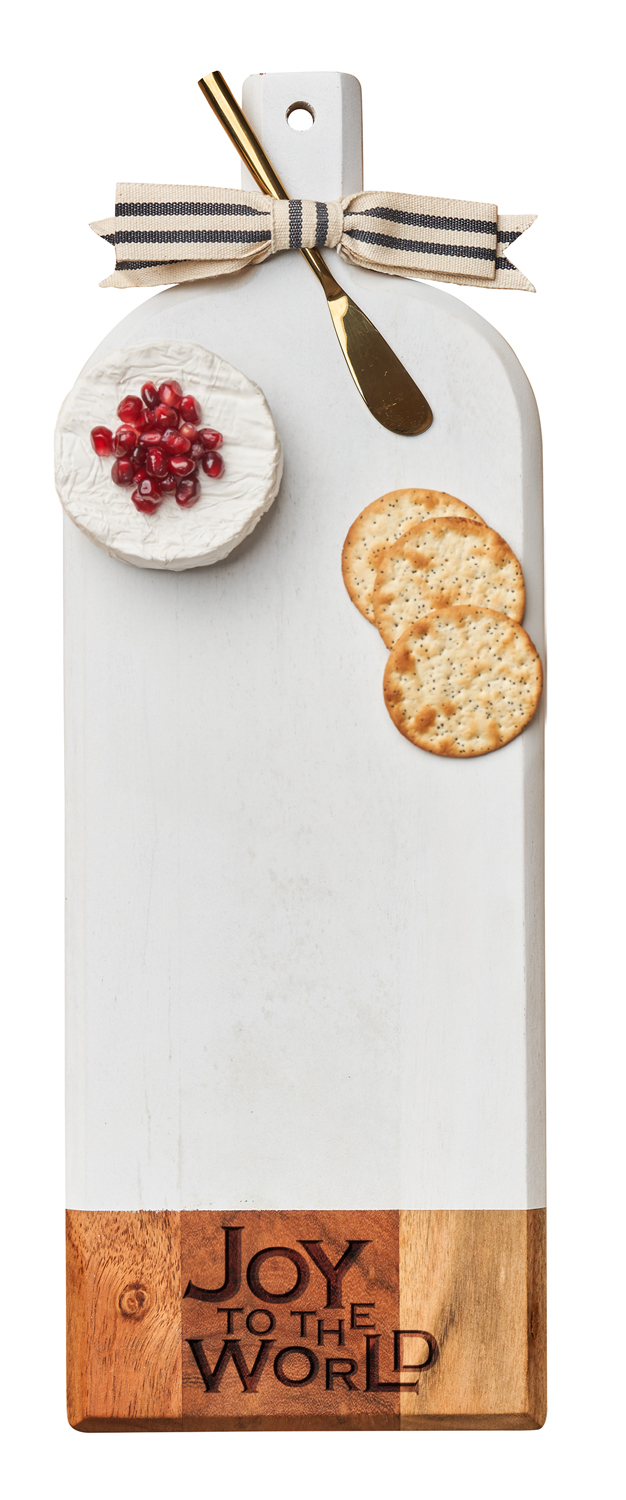 20x7" White Acacia Bevel Board Long w/ Gold Spread