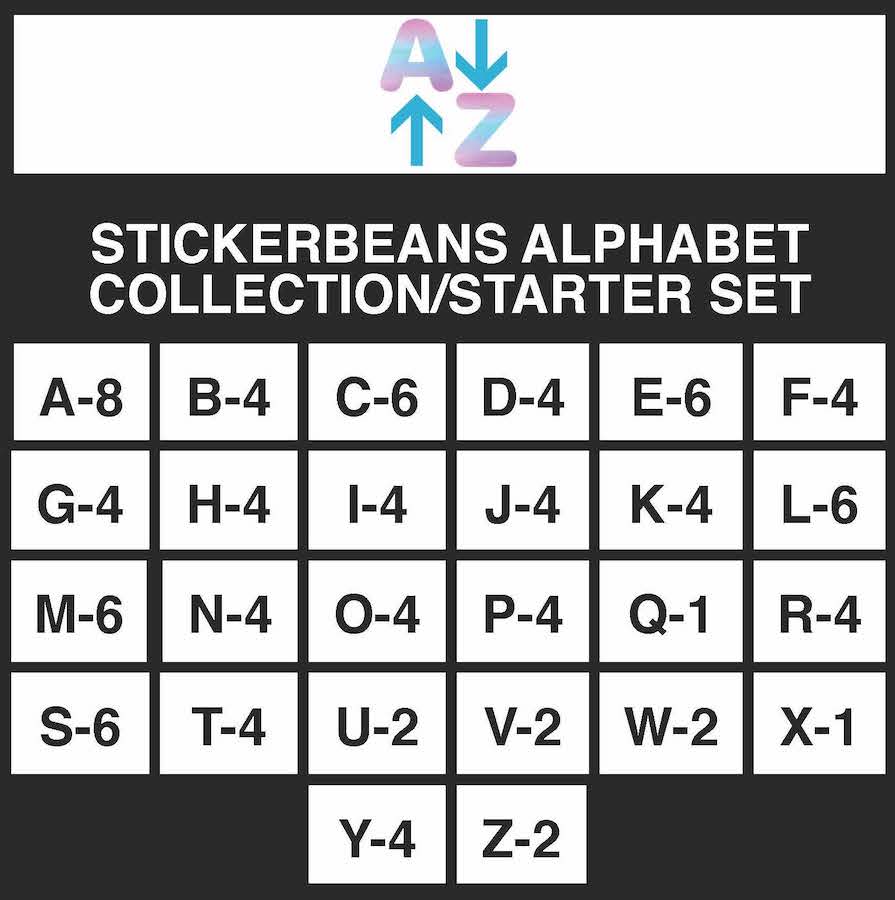 ALPHABET STARTER SET WITH 104 STICKERS (SHIPS IMMEDIATELY)