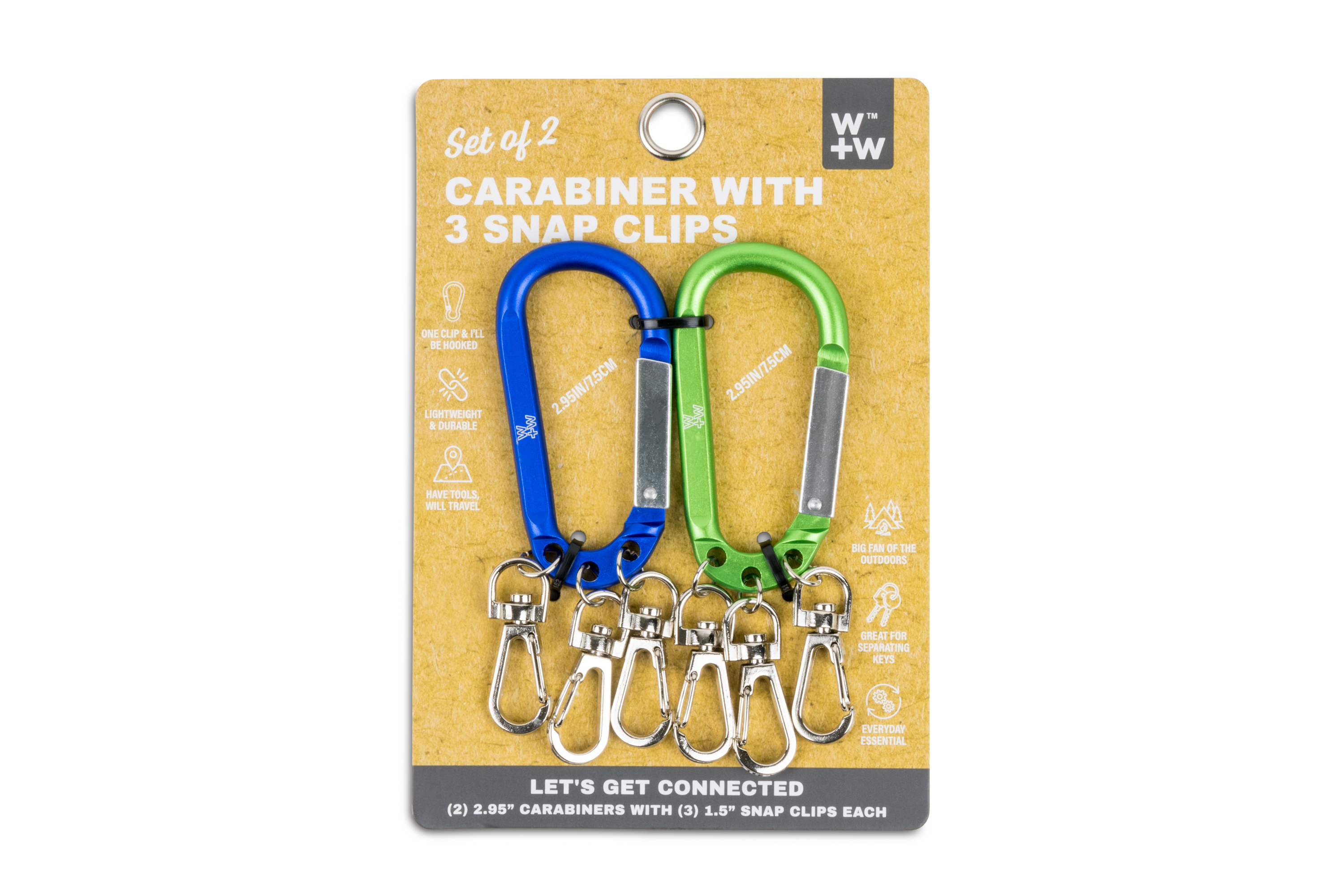 Set of 2 Carabiner w/Snap Clips - Matte BU/GN