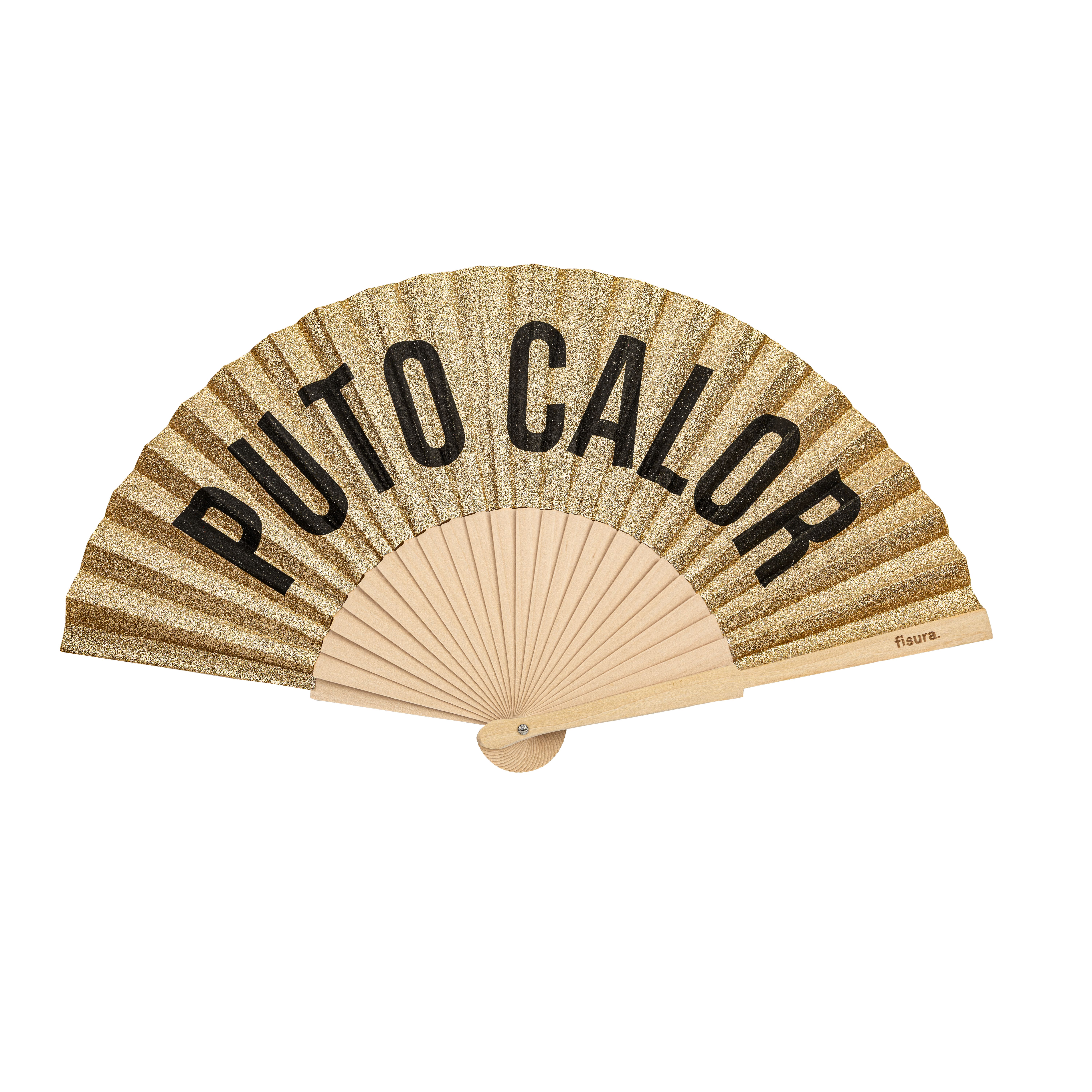 Shop Brand CatalogHave questions about “Hand fan "puto calor" gold glitter”?