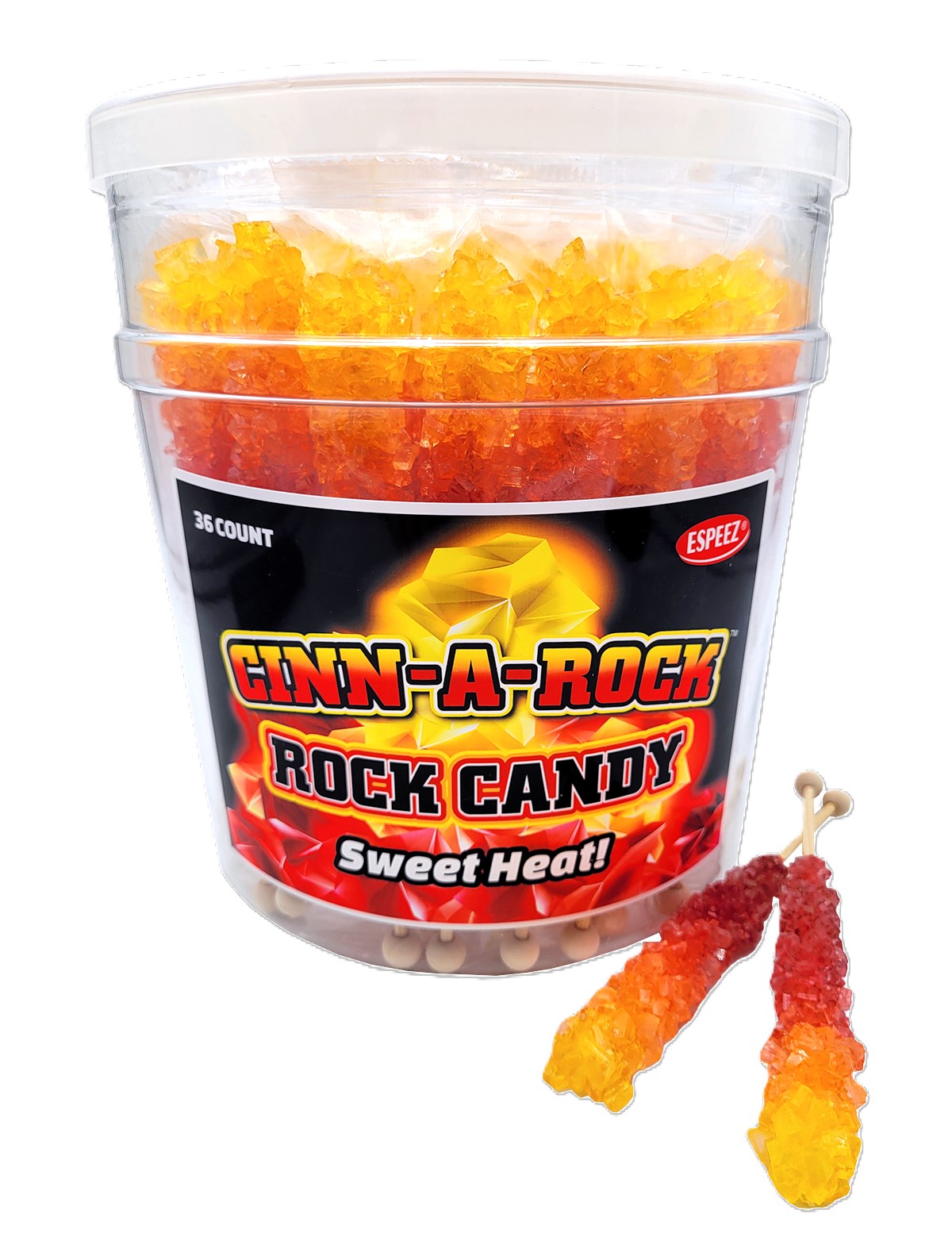Cinn-a-rock Sweet Heat Rock Candy Sticks, 36ct Tub