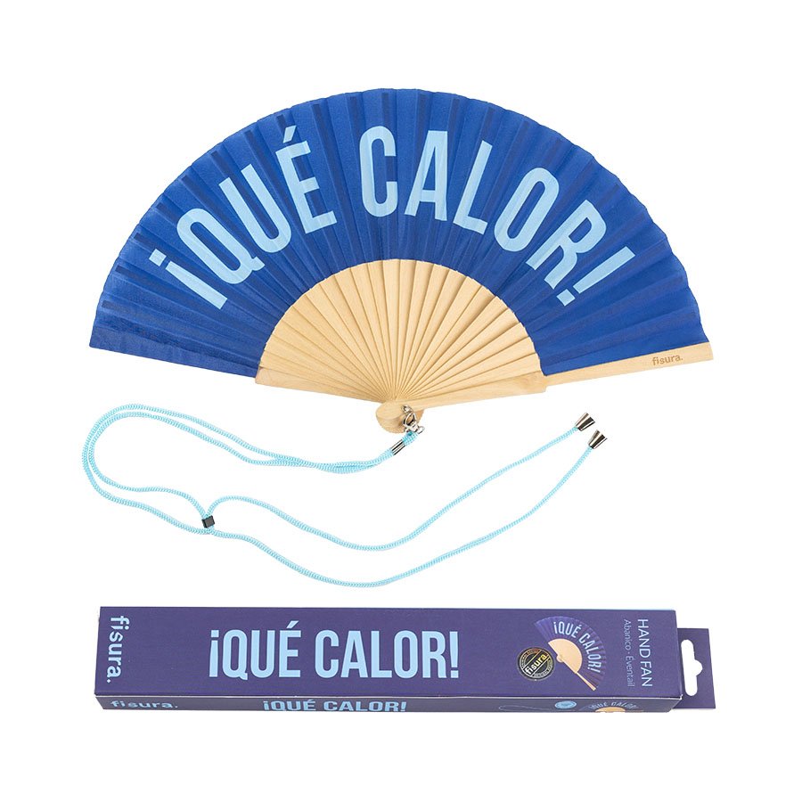 Hand fan "¡Que calor!" blue