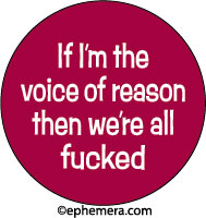 If I'm the voice of reason, then we're all fucked.