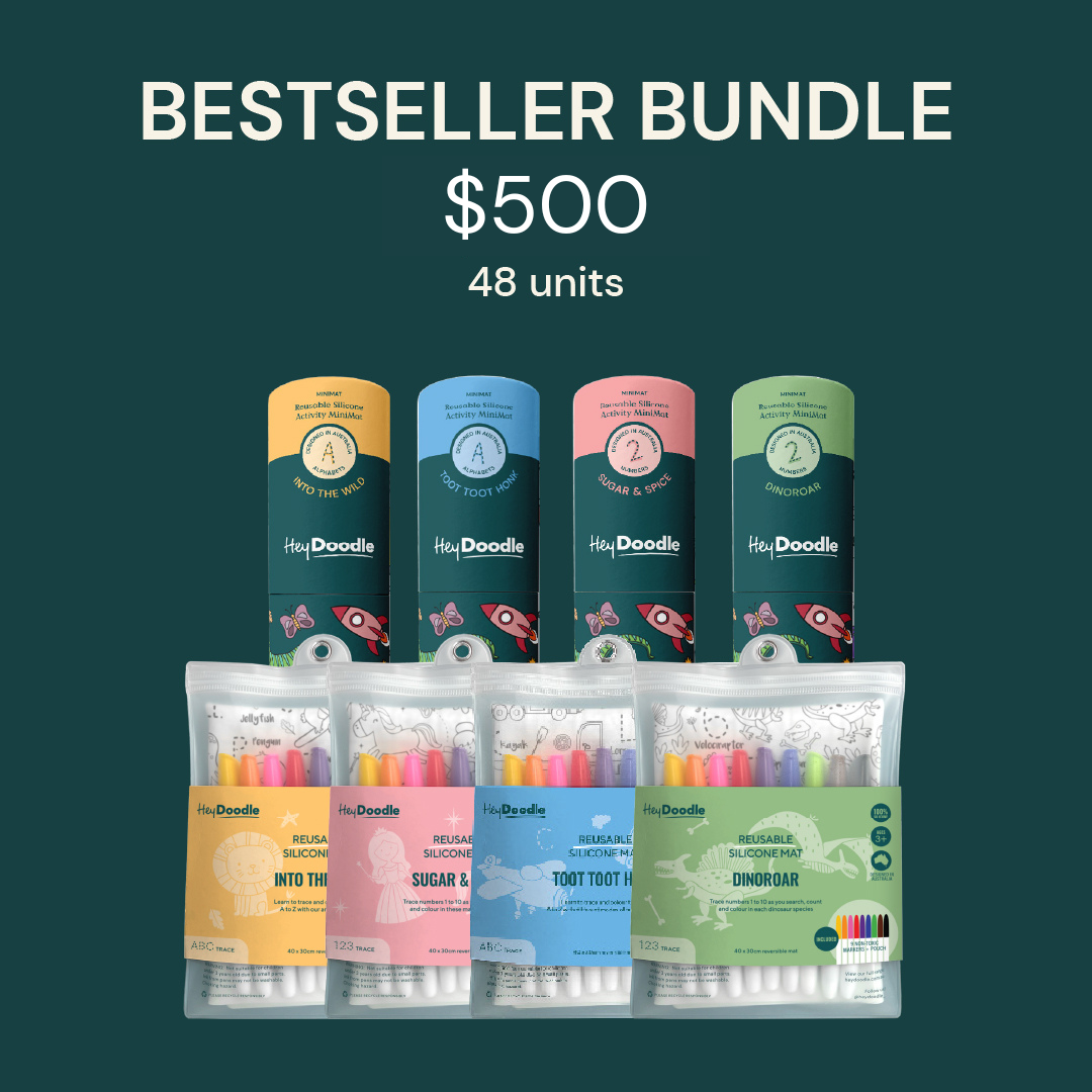 HeyDoodle is an eco-friendly alternative to coloring books. Our mats are food-grade silicone, allowing them to be erased with a wet wipe and hence endlessly reusable! So light yet durable, it has earned its well-deserved ranking in the 'Travel Activities' category. Designed by a tiger mum who creatively weaves educational elements into every product, just like hidden vegetables.
