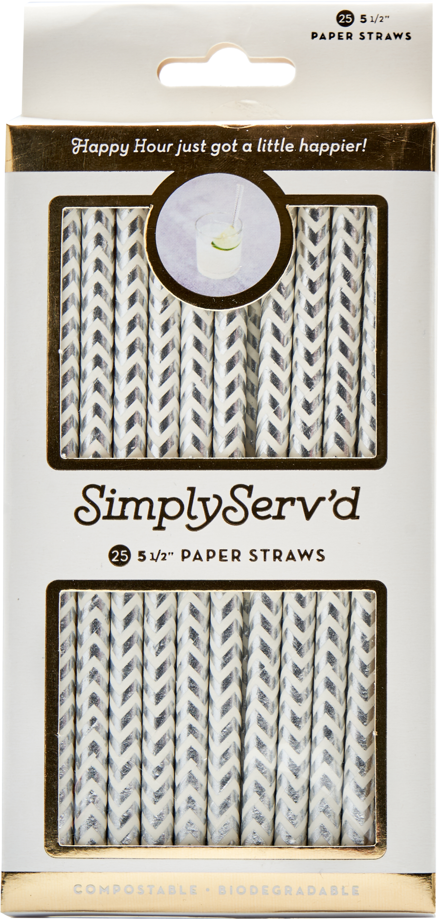 Cocktail Straw Silver Chevron/25pkg