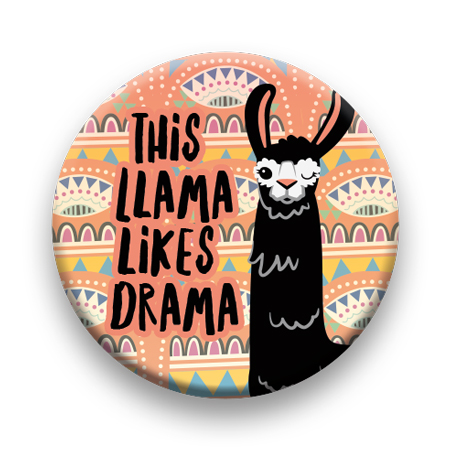 Llama - Llama Likes Drama Round Pinback Button (1.