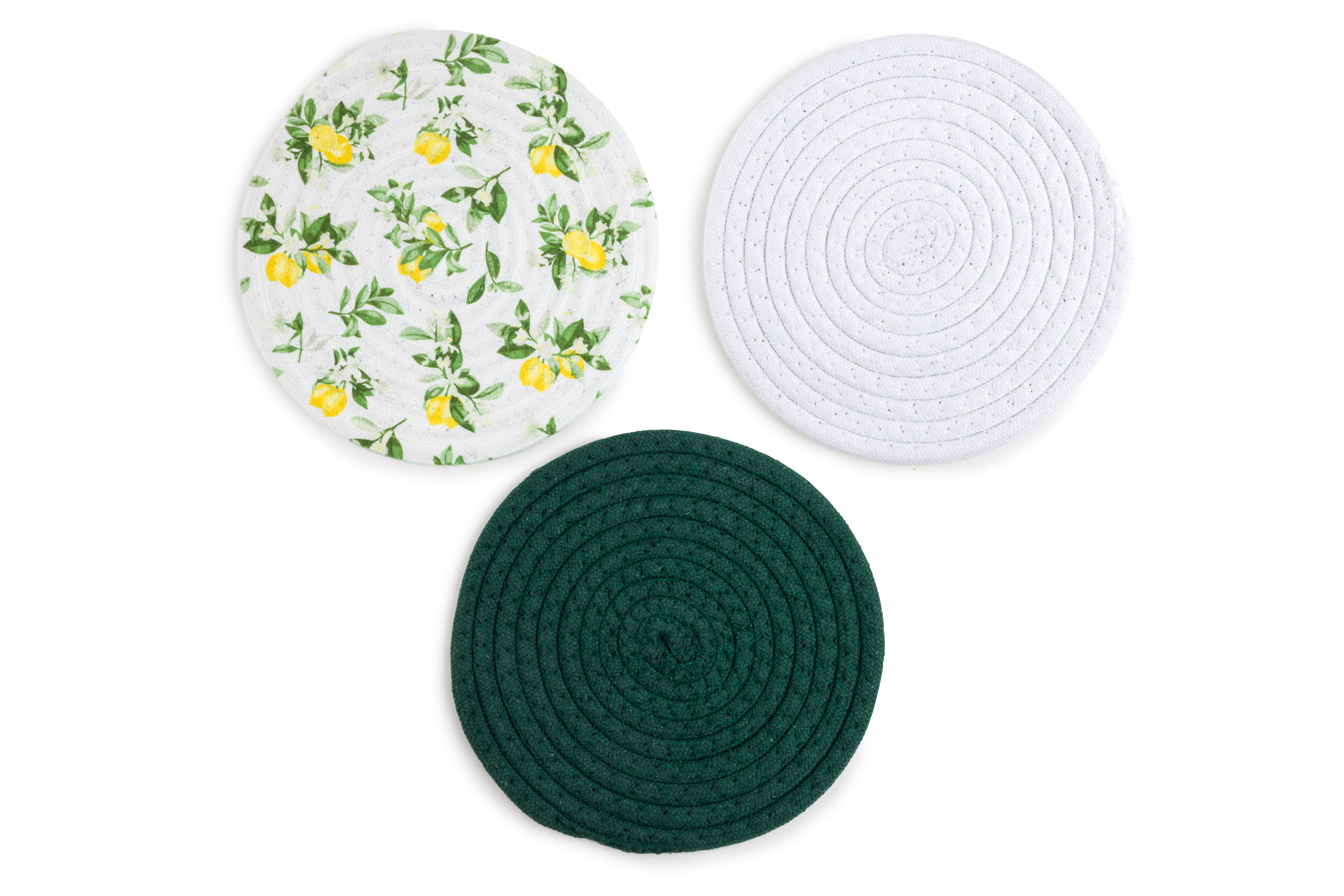 8" 3pk Printed Asst Woven Trivets - Lemon Blooms